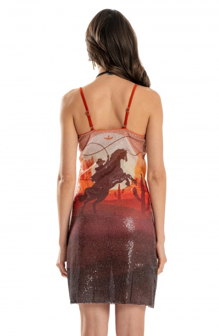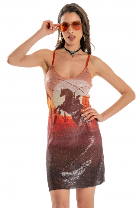 Abito corto full paillettes stampa Far West.