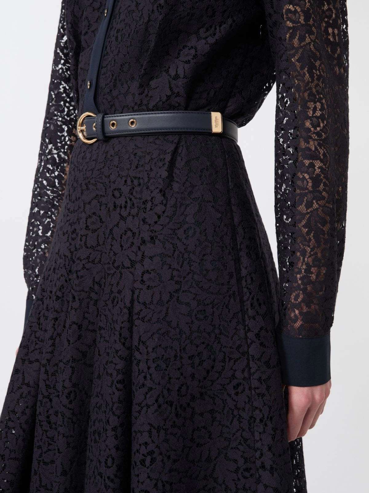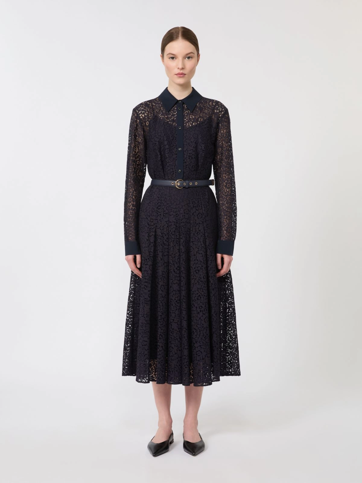 Abito lungo chemisier con gonna a pieghe cucite e poi sfumate sul fondo.