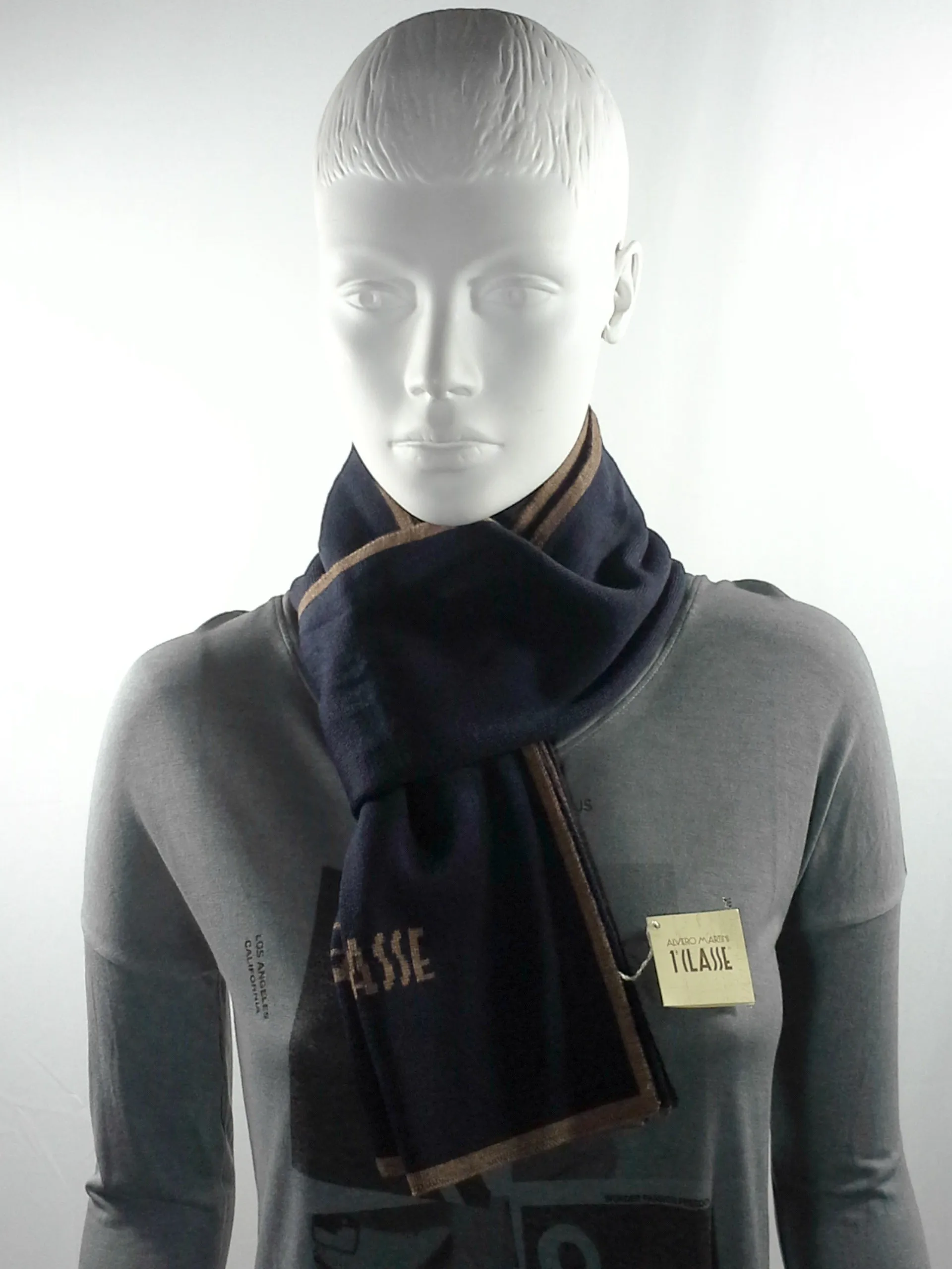 Sciarpa Alviero Martini 1° Classe in lana rasata bicolore con mappamondo e scritta ai due estremi.