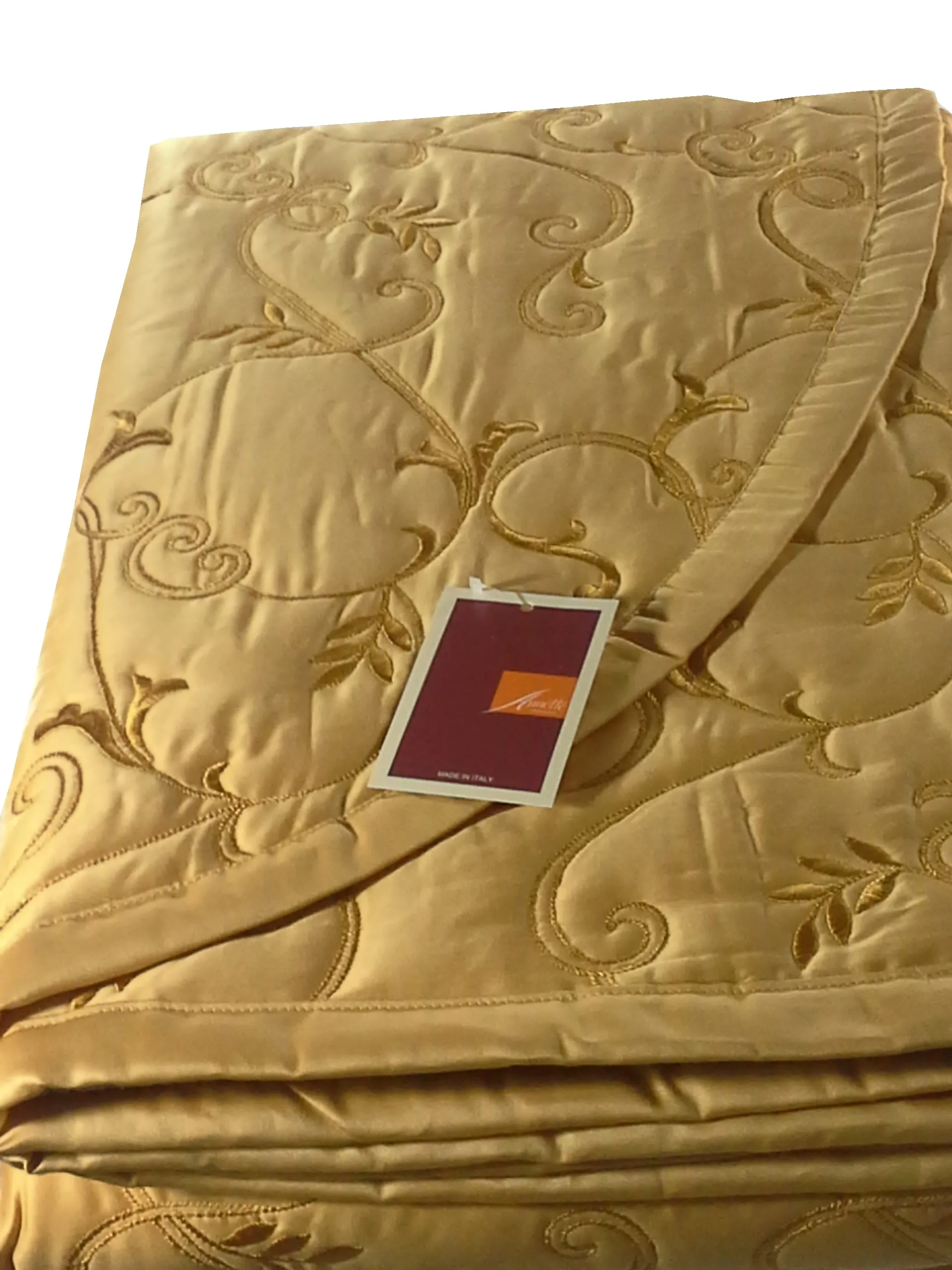 Annette copriletto trapuntato / trapuntino art. 2446T. Elegante trapuntatura con ricamo floreale tono su tono. Tessuto puro cotone 100% , Imbottitura poliestere 100%. Misura matrimoniale: 275×270 cm. Made in Italy. Marca: Annette.