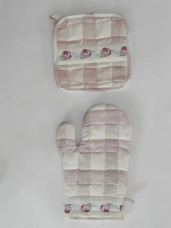 Guantone imbottito fantasia quadri con greca rose appendibile con anello