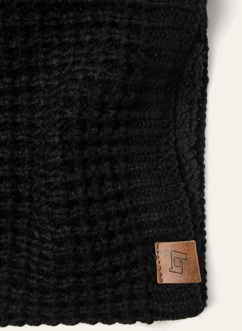 Blend Scaldacollo Uomo art. 20709199. Particolare scaldacollo in maglia grossa e logo in ecopelle sulla parte inferiore. Morbida e calda imbottitura interna in ecopelliccia ideale da indossare nei periodi più freddi per ristorarsi dal gelo. Composizione: 100% Acrilico. Marca: Blend.