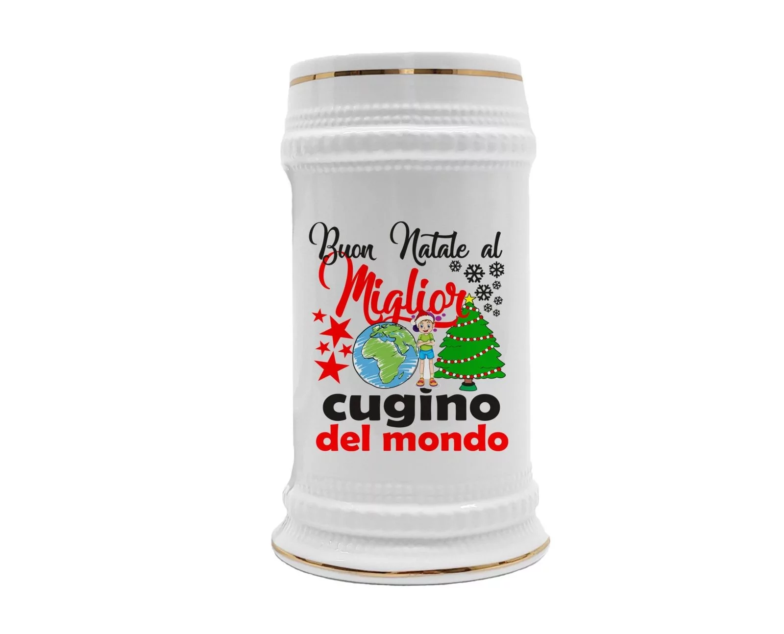 Boccale Cugino – Regalo Natale Cugino – Buon Natale al Miglior Cugino del Mondo – Idee Regalo Cugino – Boccale in Ceramica Cugino – Idea Regalo Cugino – Regalo Natale Cugino