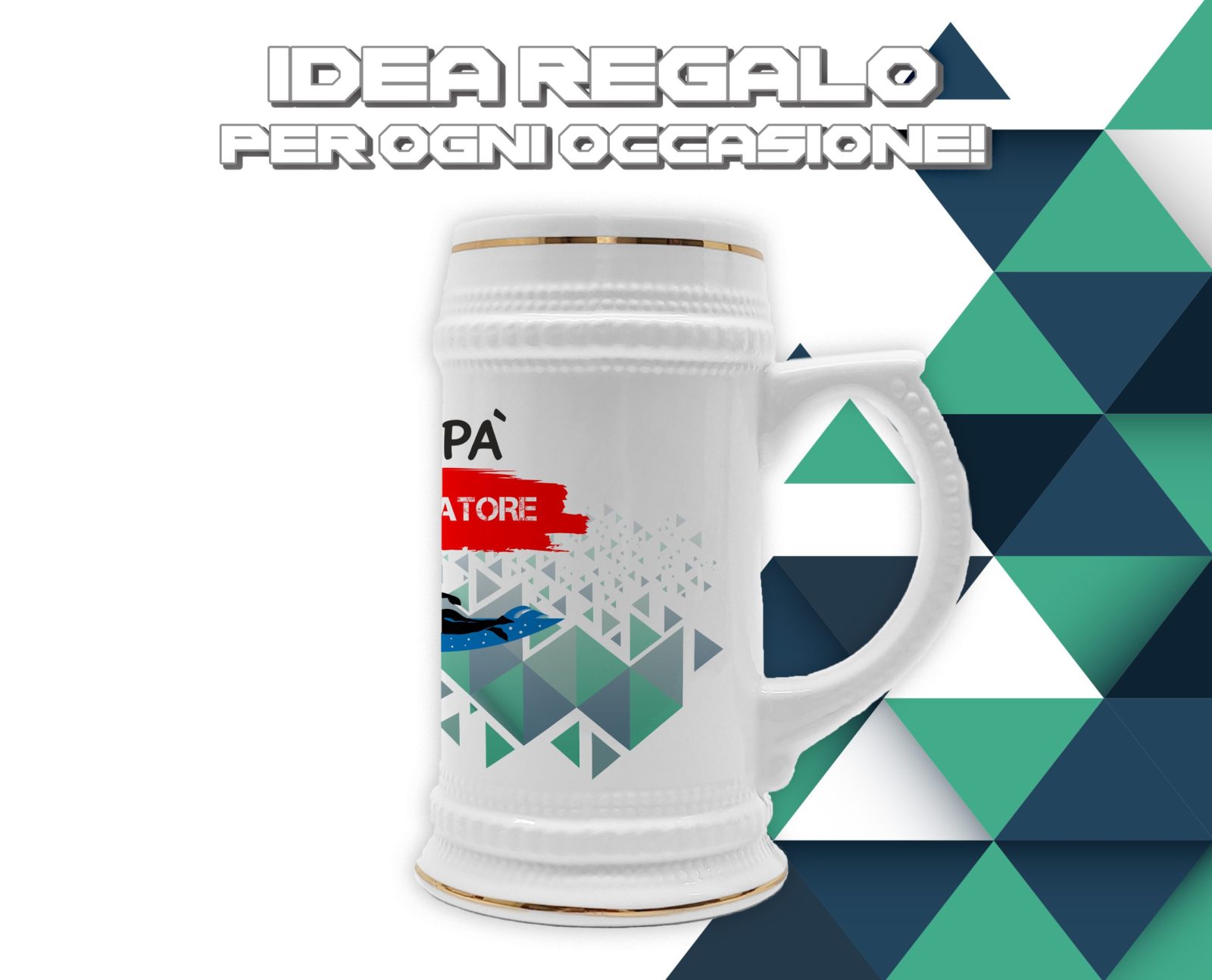 Boccale in ceramica Papà Nuotatore – Festa del Papà – Idea Regalo Papà Nuotatore – Boccale Papà – Idea Regalo Papà – Regalo Compleanno Papà – Gadget Nuotatore