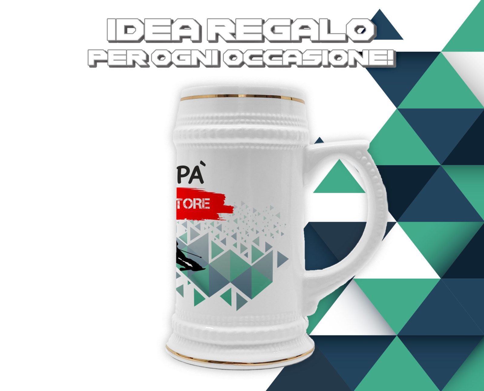 Boccale in ceramica Papà Sciatore – Festa del Papà – Idea Regalo Papà Sciatore – Boccale Papà – Idea Regalo Papà – Regalo Compleanno Papà – Gadget Sciatore