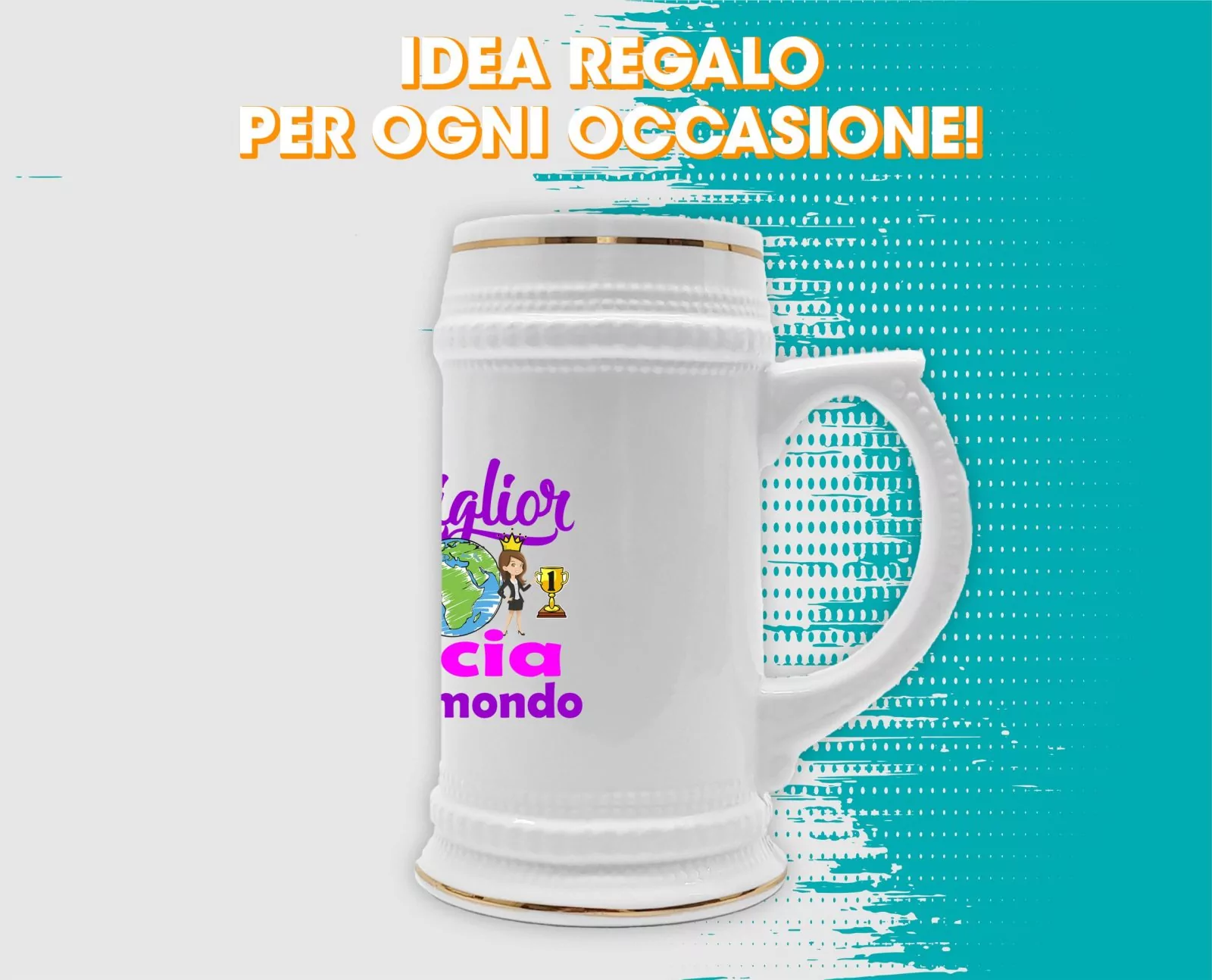 Boccale da Birra in ceramica realizzato in sublimazione , resistente ai lavaggi in lavastoviglie , con pratico manico che facilita la presa .