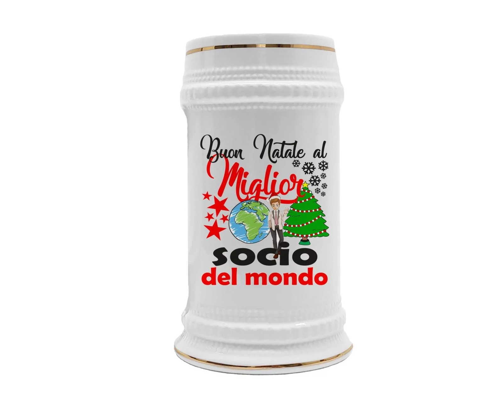 Boccale Socio – Regalo Natale Socio – Buon Natale al Miglior Socio del Mondo – Regali Socio – Boccale Ceramica Socio – Idee Regalo Socio – Regalo Socio Natale