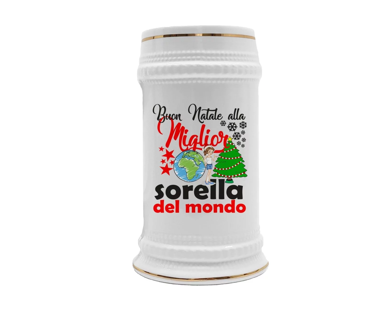 Boccale Sorella – Buon Natale alla Miglior Sorella del Mondo – Regali Sorella – Boccale in Ceramica Sorella – Idea Regalo Sorella – Boccale Natale Sorella – Regalo Natale Sorella