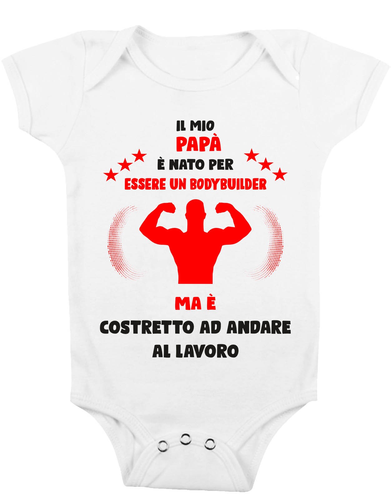 Body Da Neonato – Body Neonato Festa del Papà – Il mio Papà è Nato per essere un body builder ma è costretto ad andare a Lavoro – Body Papà – Idea Regalo Papà