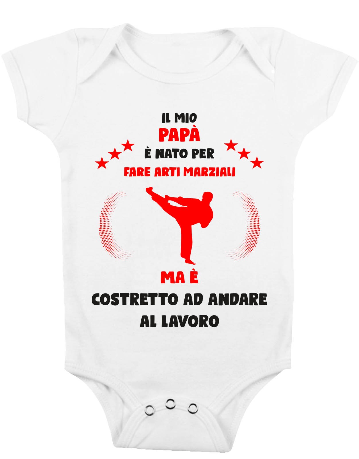 Body Da Neonato – Body Neonato Festa del Papà – Il mio Papà è Nato per fare arti marziali ma è costretto ad andare a Lavoro – Body Papà – Idea Regalo Papà