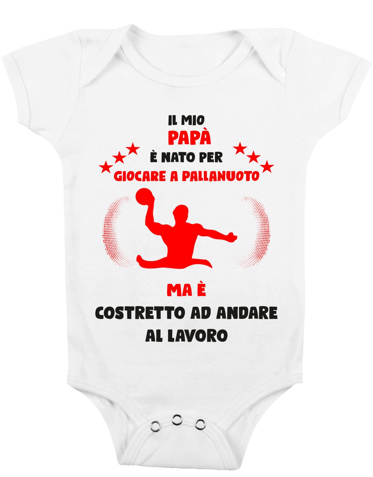 Body Da Neonato – Body Neonato Festa del Papà – Il mio Papà è Nato per giocare a pallanuoto ma è costretto ad andare a Lavoro – Body Papà – Idea Regalo Papà