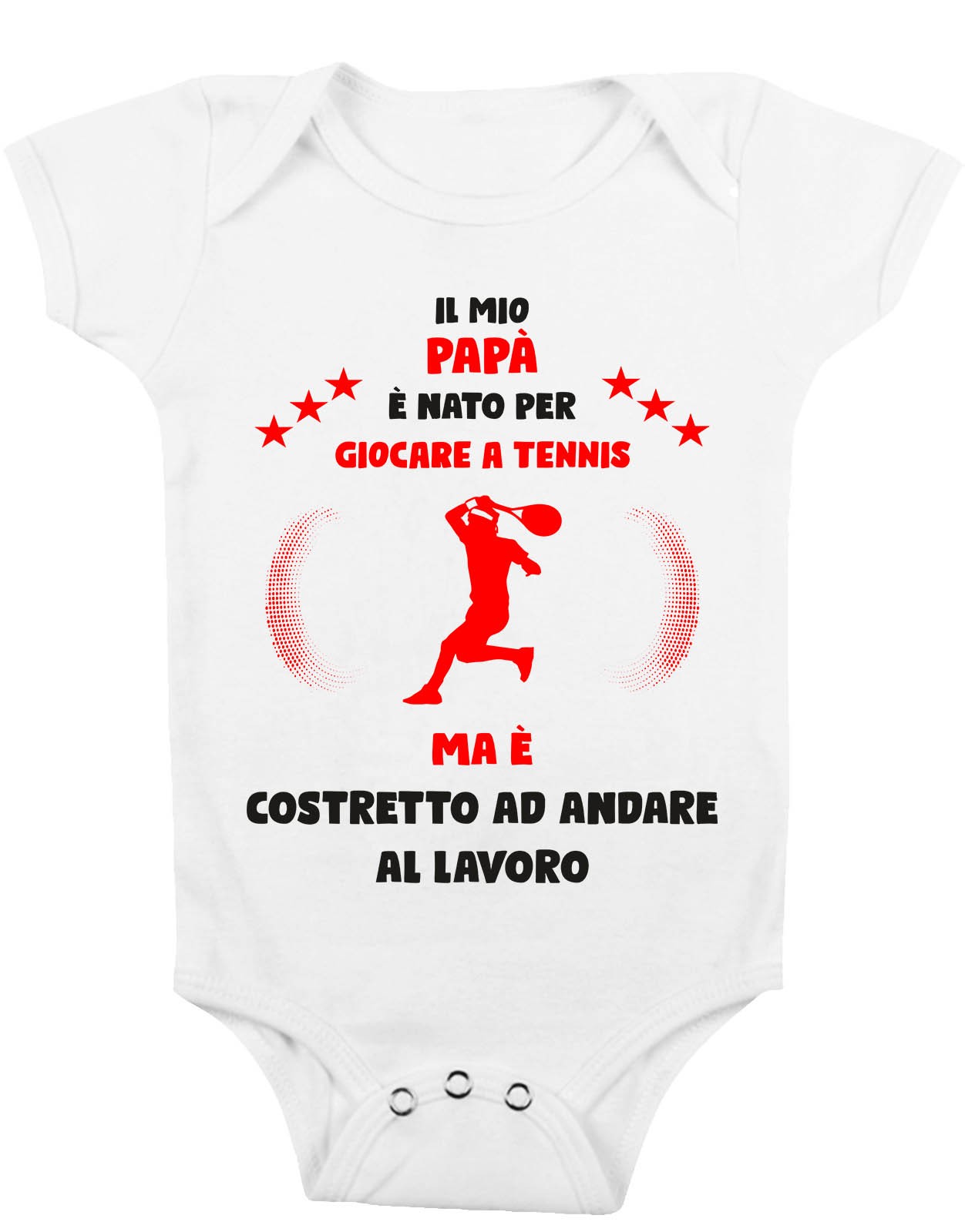Body Da Neonato – Body Neonato Festa del Papà – Il mio Papà è Nato per giocare a tennis ma è costretto ad andare a Lavoro – Body Papà – Idea Regalo Papà