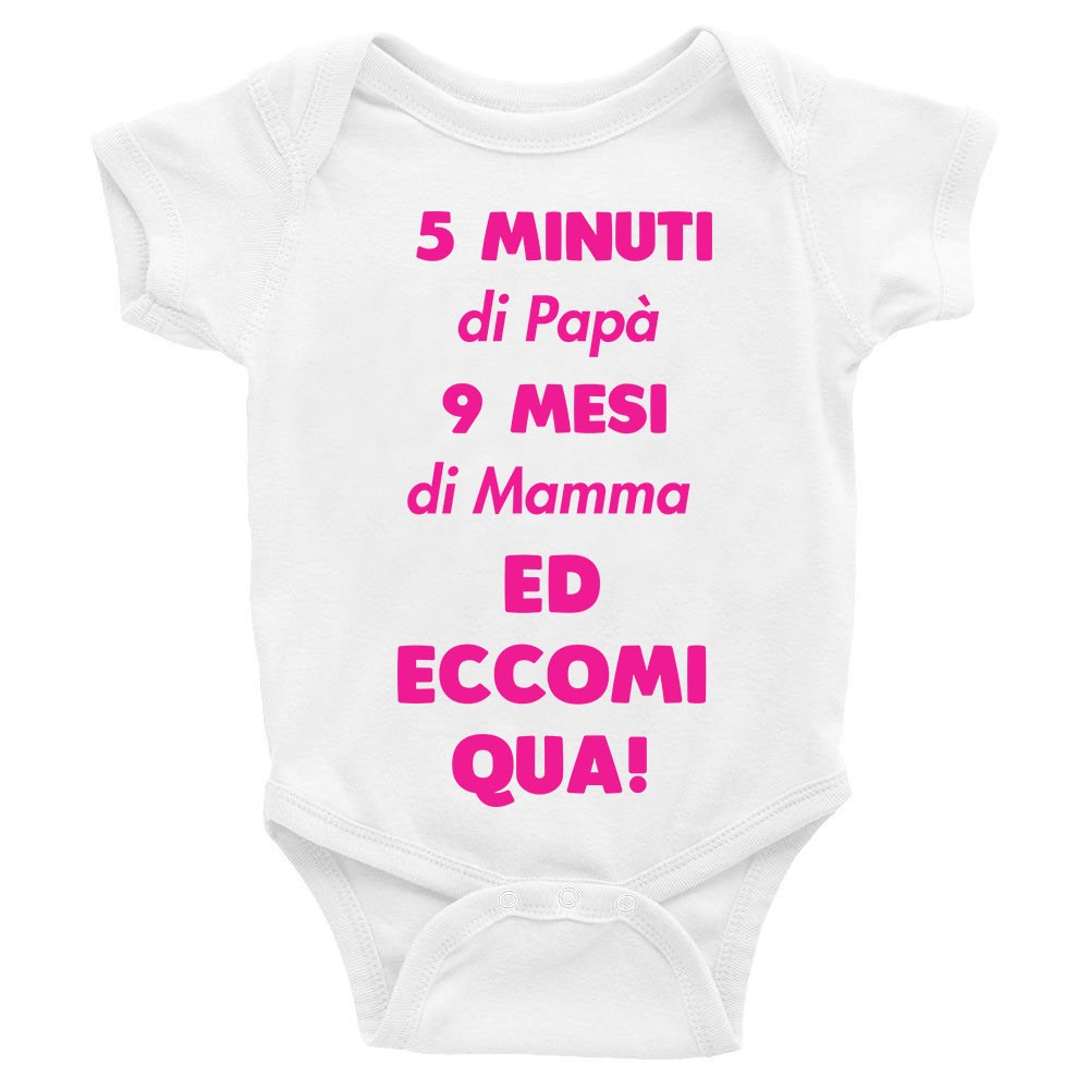 Body da neonato femminuccia 5 minuti di papa’ 9 mesi di mamma ed eccomi qua! – pagliaccetto in cotone