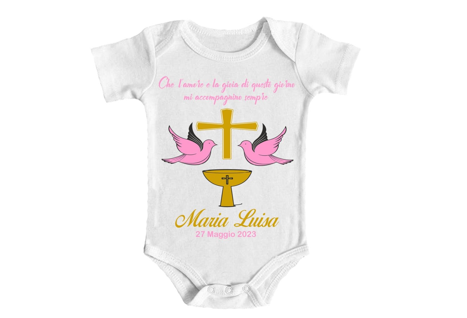 Body Neonata – NOME DATA Personalizzabili – Amore – Gioia – Giorno Speciale – Battesimo – Augurio – Femminuccia – Madrina – Padrino – Bimba – Baby