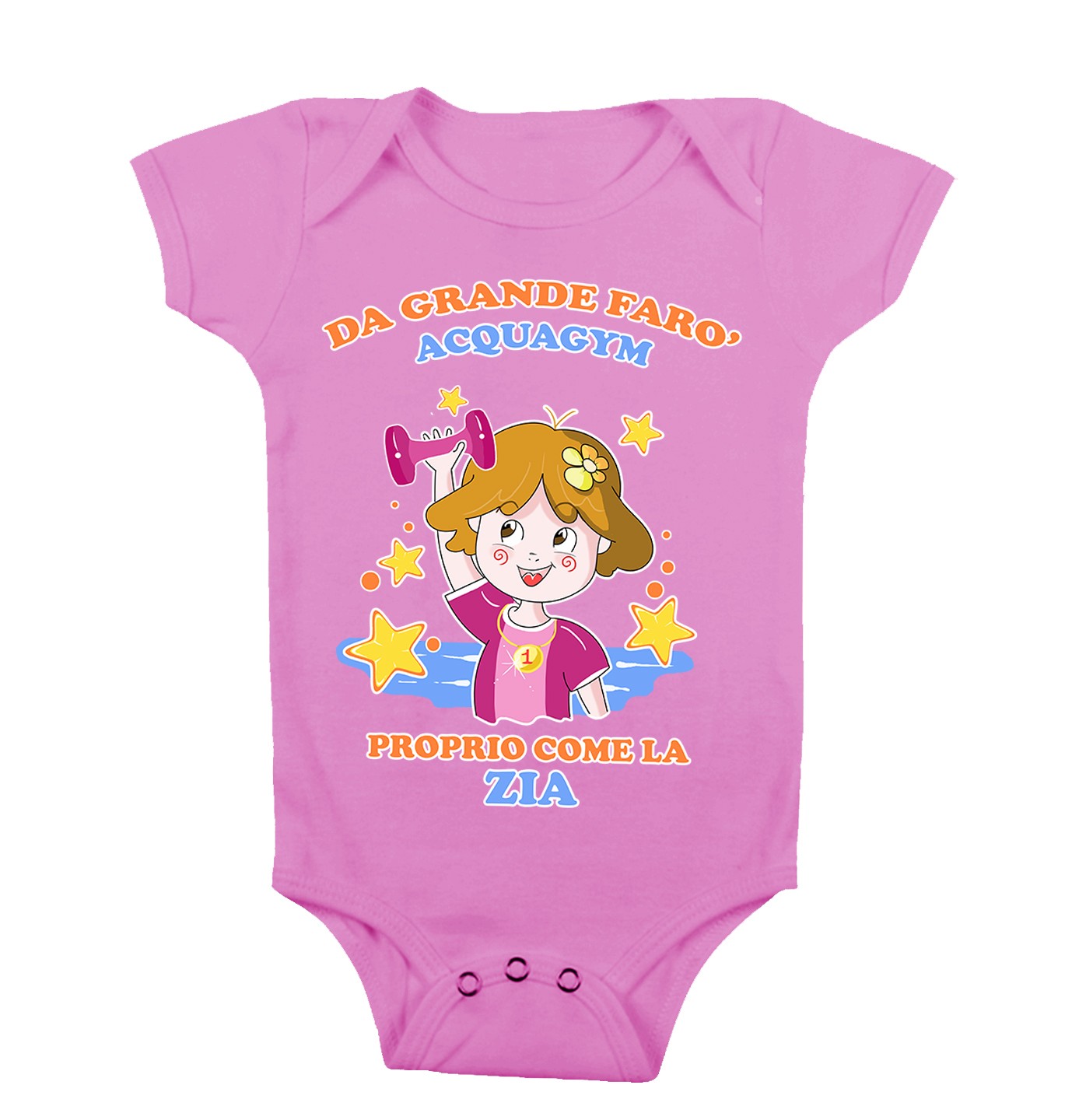 Body Neonata Zia – Da Grande Farò Acquagym Proprio come la Zia – Body Neonato Sport – Body Neonato Acquagym – Body Neonata Zia Divertenti