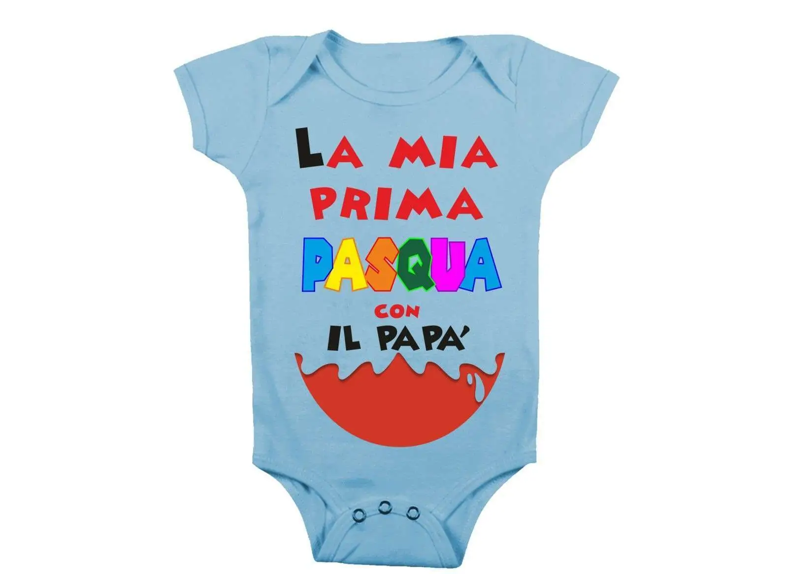 Body Neonato Pasqua – La mia Prima Pasqua con il Papà – Manica Corta – Maschietto – Femminuccia – Idea Regalo