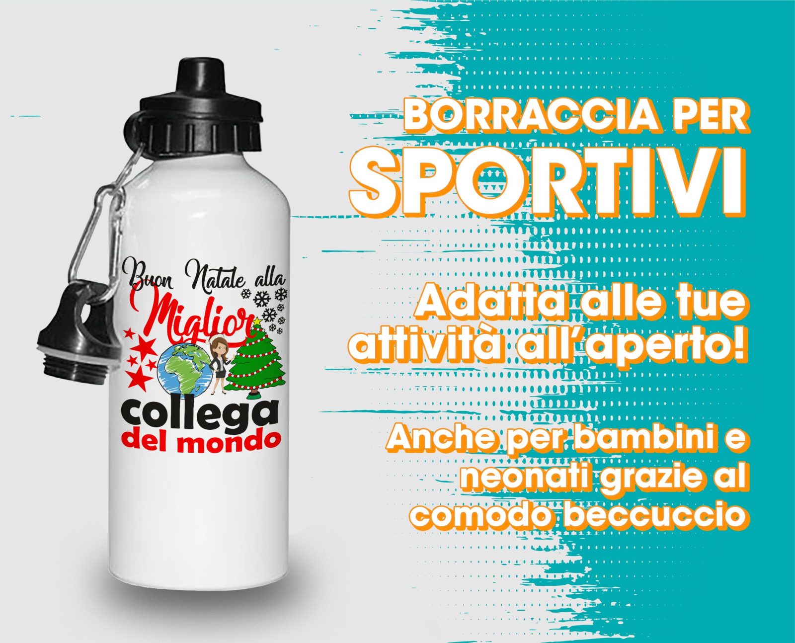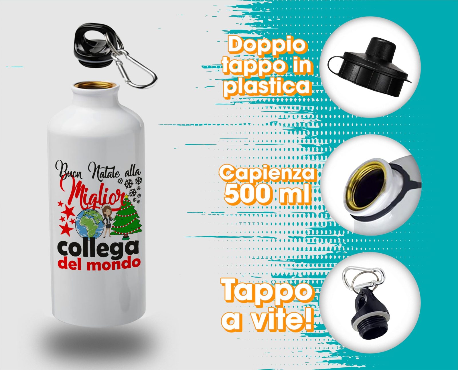 Borraccia Collega – Regalo Natale Collega – Buon Natale alla Miglior Collega del Mondo – Regali Collega – Borraccia in Alluminio Collega – Idea Regalo Collega – Regalo Natale Collega