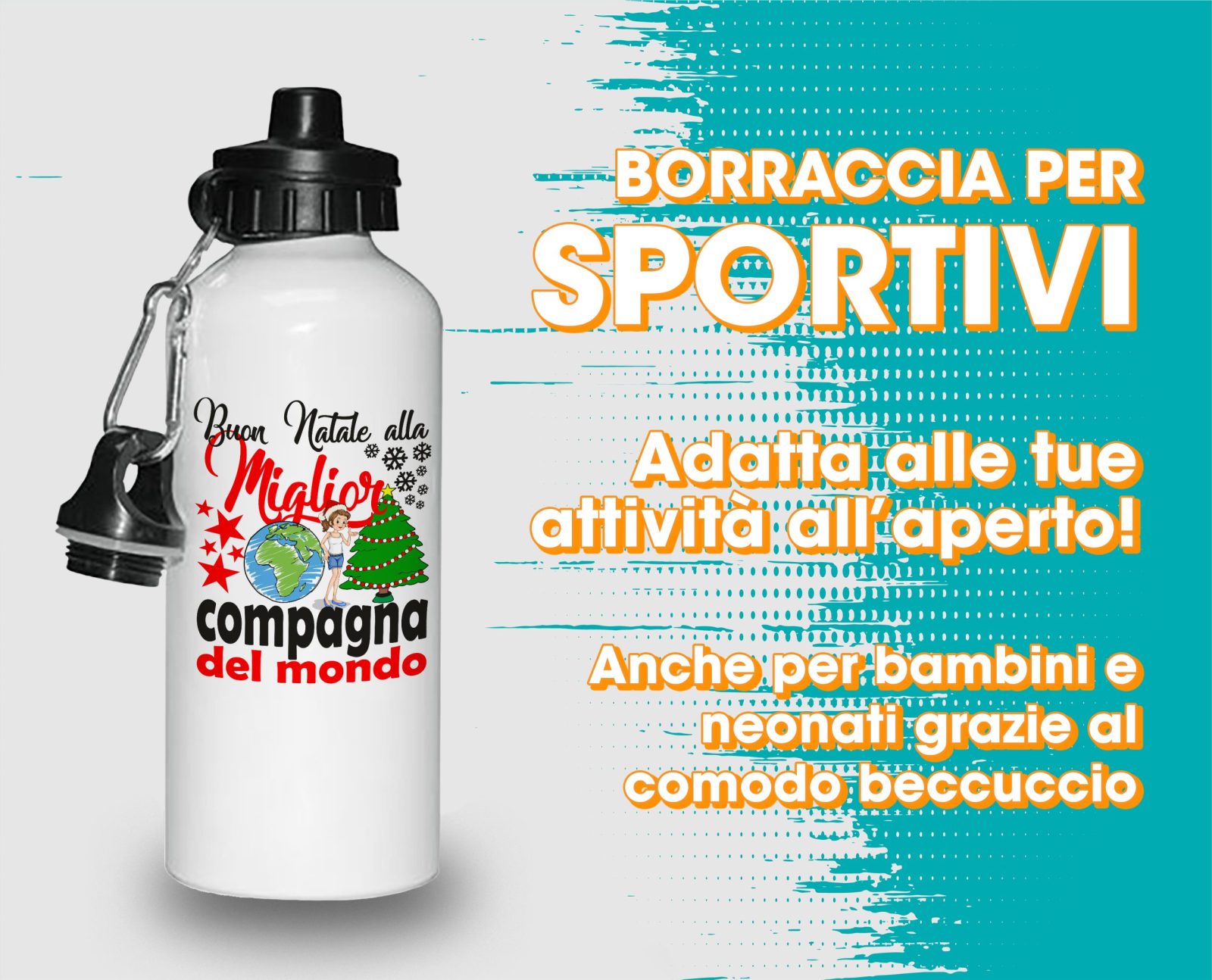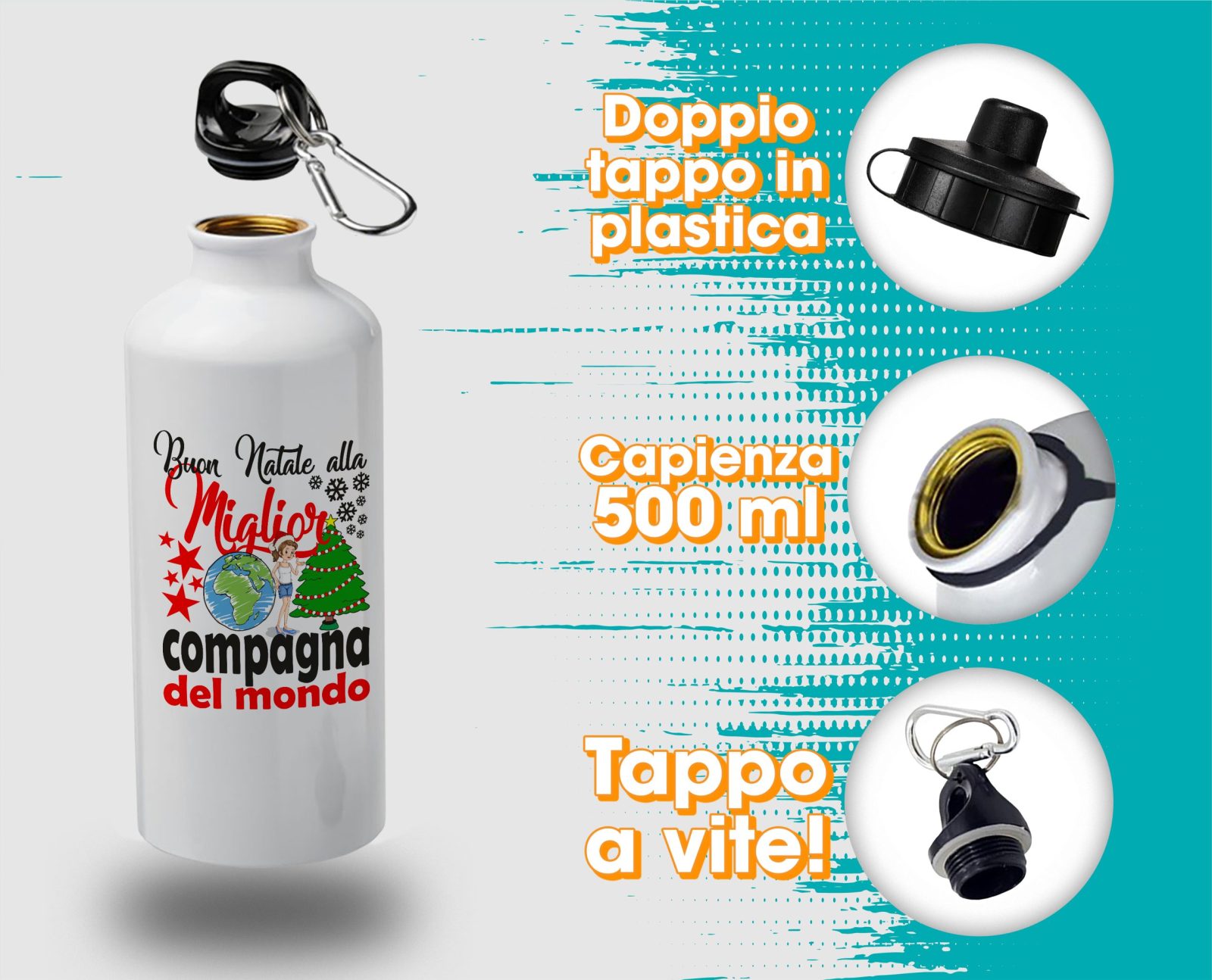 Borraccia Compagna – Regalo Natale Compagna – Buon Natale alla Miglior Compagna del Mondo – Regali Compagna – Borraccia in Alluminio Compagna – Idea Regalo Compagna – Regalo Natale Compagna
