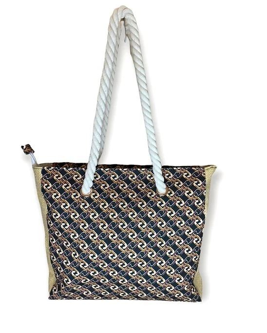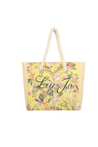 Borsa da mare canvas Liu Jo con laterali effetto paglia, parte centrale frontale e posteriore in tessuto resistente, manici grandi in corda e asole rotonde in metallo. Grande capienza.Internamente foderata in bianco con presenza di taschino. chiusura a cerniera. Pratica e comoda. Il suo design vi farร immergere direttamente nella stagione estiva. un accessorio glamour e trendy. Disponibile in tre versioni: Motivo floreale e logo Liu Jo stampato sul davanti con fondo giallo o nero, motivo monogram.