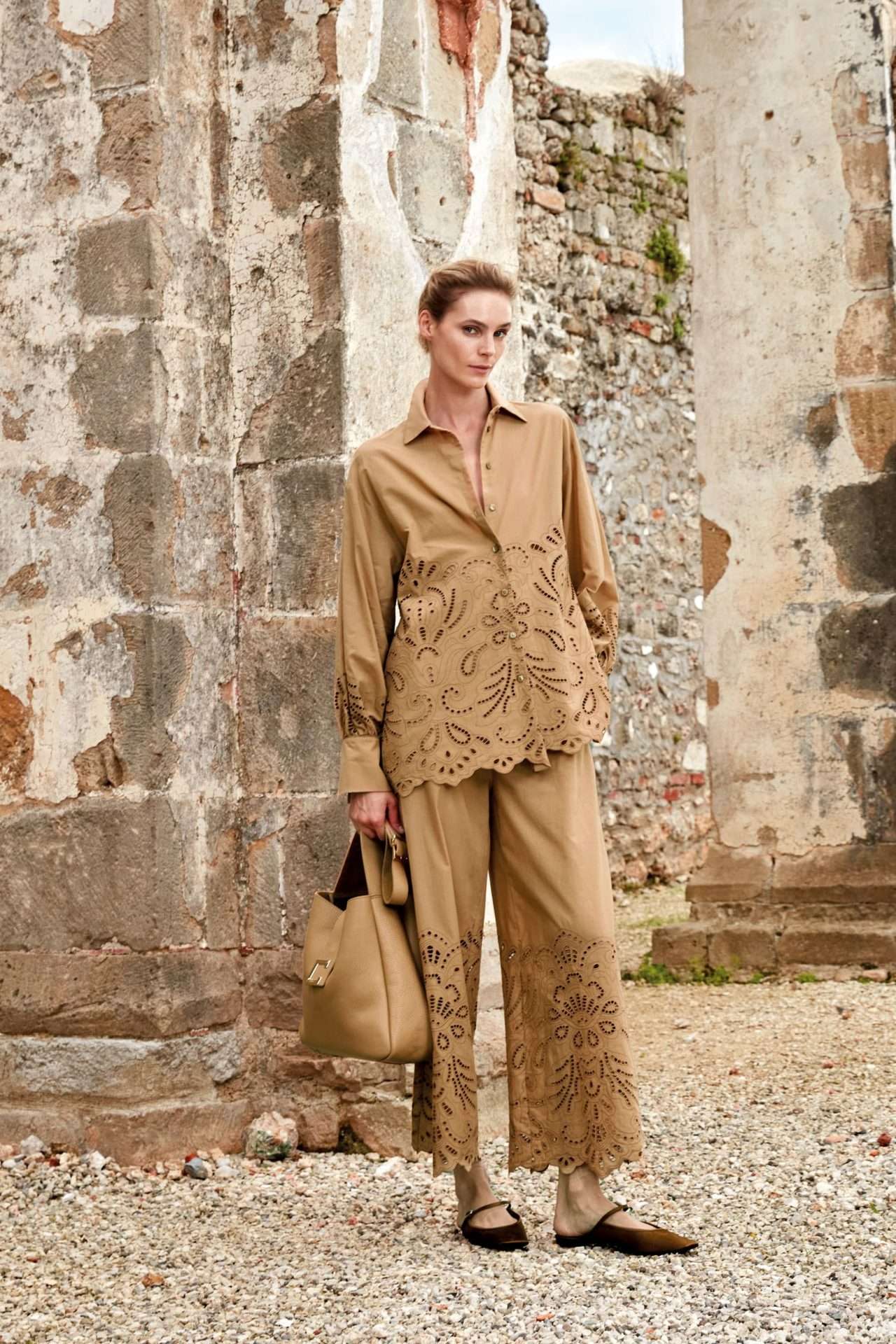 Camicia in cotone con inserti in pizzo sangallo sul fondo