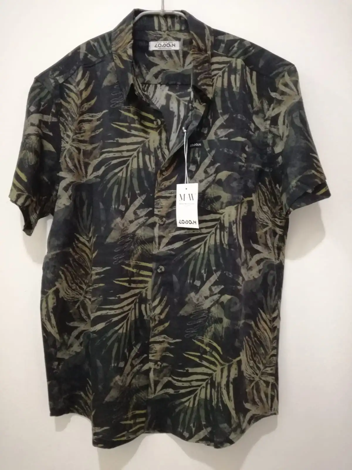 LOSAN camicia mezza manica in 100% cotone tessuto leggero e molto traspirante fantasia tropicale utile taschino a toppa nel petto lato sinistro colletto collegiale vestibilità regolare/comoda