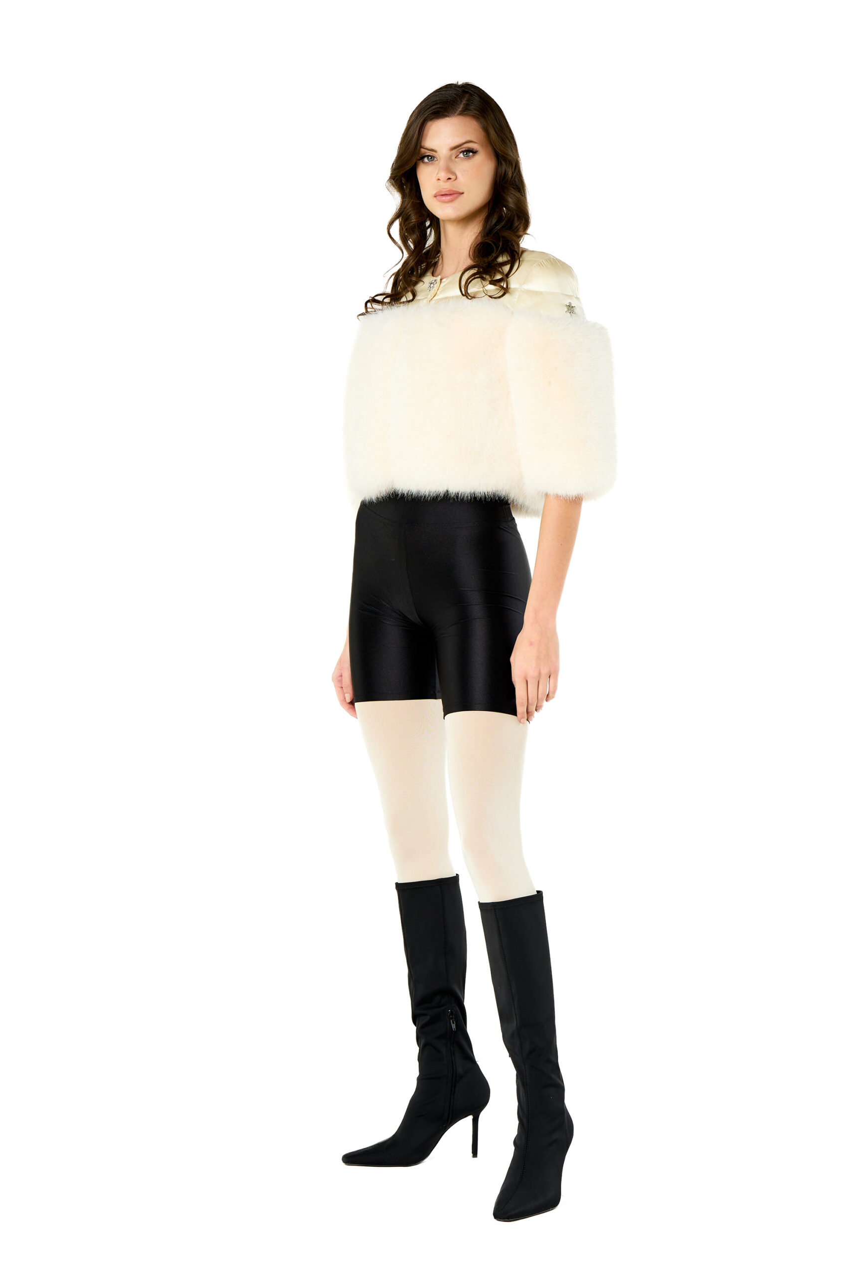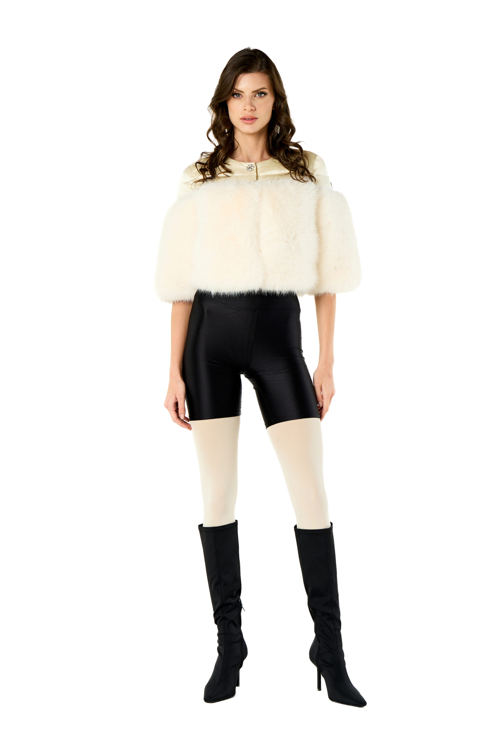 Cappa ecopelliccia e bottone gioiello
