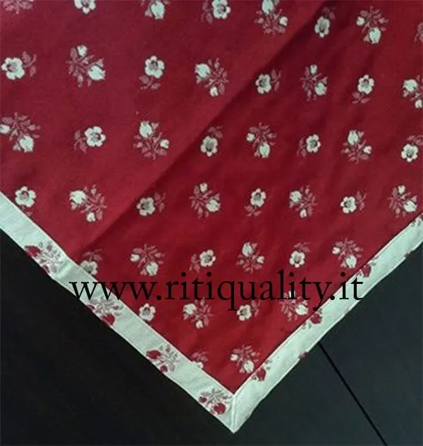 Centrotavola natalizio art.Roselline disponibile nella variante rosso con delicata fantasia roselline beige. Ad arricchire il centrotavola è la bordura in contrasto beige con roselline rosse. Ideale per dare un tocco raffinato e addobbare con eleganza la tua casa. Tessuto gobelin. Misure: 90×90 cm. Composizione: 100% cotone.
