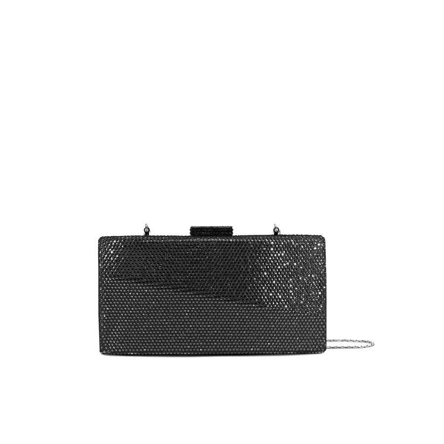 Clutch fully crystals di taglio moderno e glamour con chiusura gioiello.