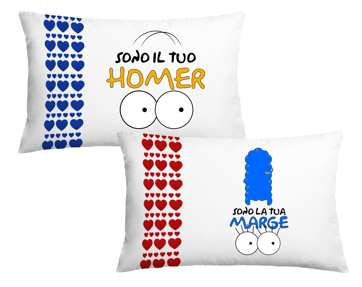Coppia di Federe Cuscino Letto Sanvalentino – Sono la tua Marge – Sono il tuo Homer – Cartoni Animati – Dimensioni: 69×39 cm – Idea Regalo