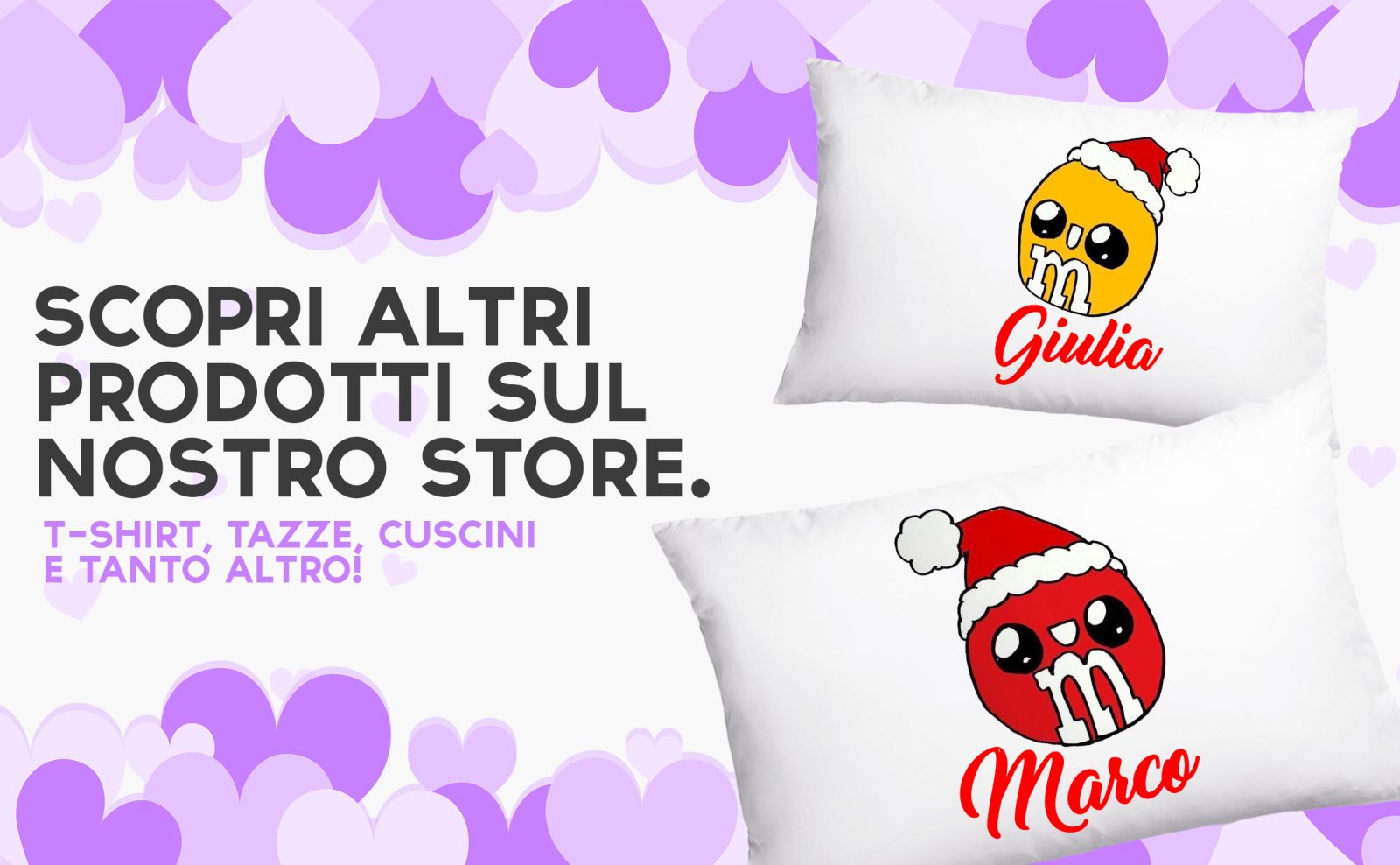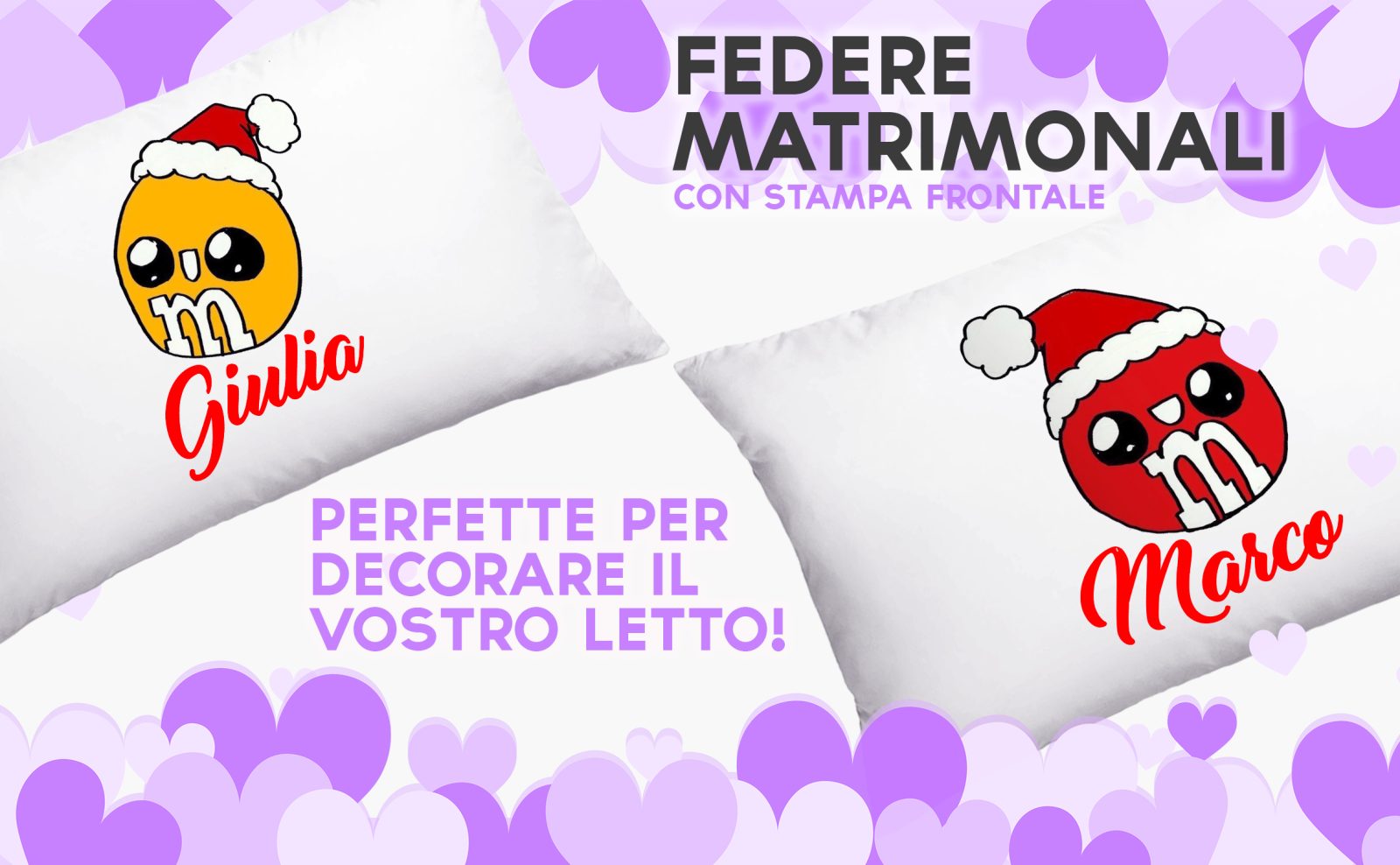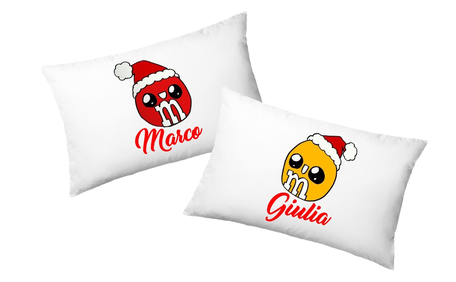 Coppia Federe Personalizzate – Amore – Cioccolatini -Natale – [PERSONALIZZA NOMI] – Festa Innamorati – Cuscino San Valentino- Idea Regalo Fidanzata – Regalo per Coppia