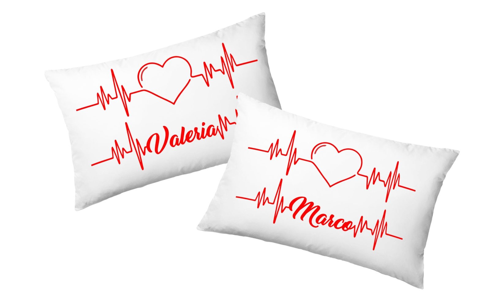 Coppia Federe Personalizzate – Amore – Cuore elttrocardiogramma dell’amore – [PERSONALIZZA NOMI] – Festa Innamorati – Cuscino San Valentino- Idea Regalo Fidanzata – Regalo per Coppia