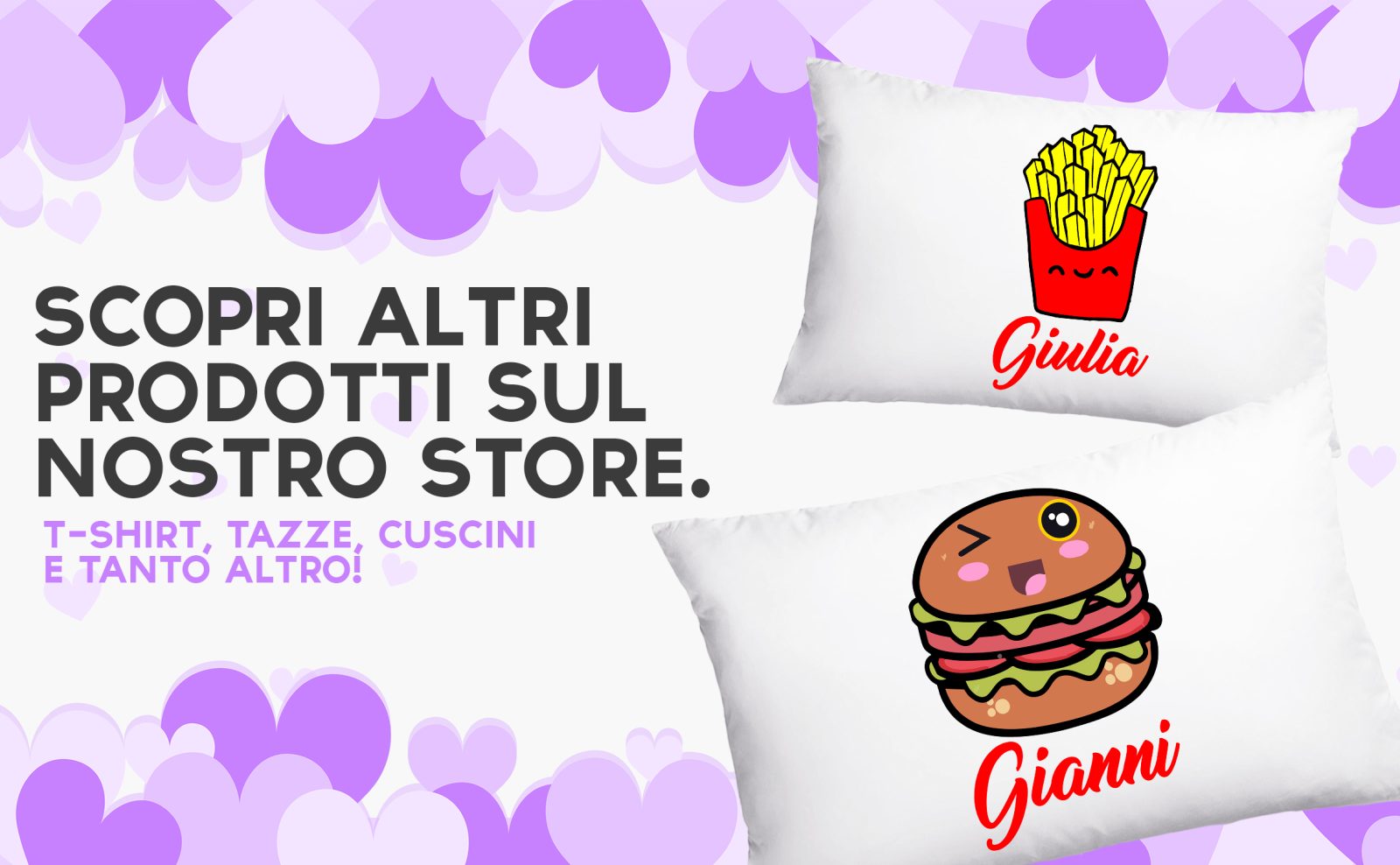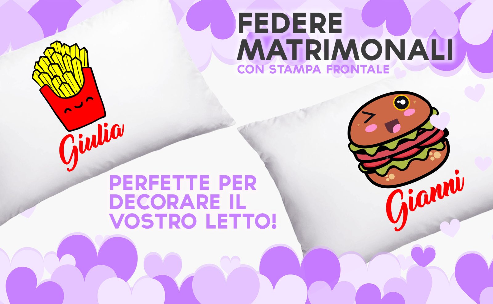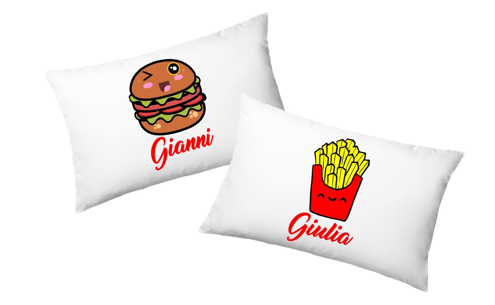 Coppia Federe Personalizzate – Amore – Hamburger e patatine – [PERSONALIZZA NOMI] – Festa Innamorati – Cuscino San Valentino- Idea Regalo Fidanzata – Regalo per Coppia