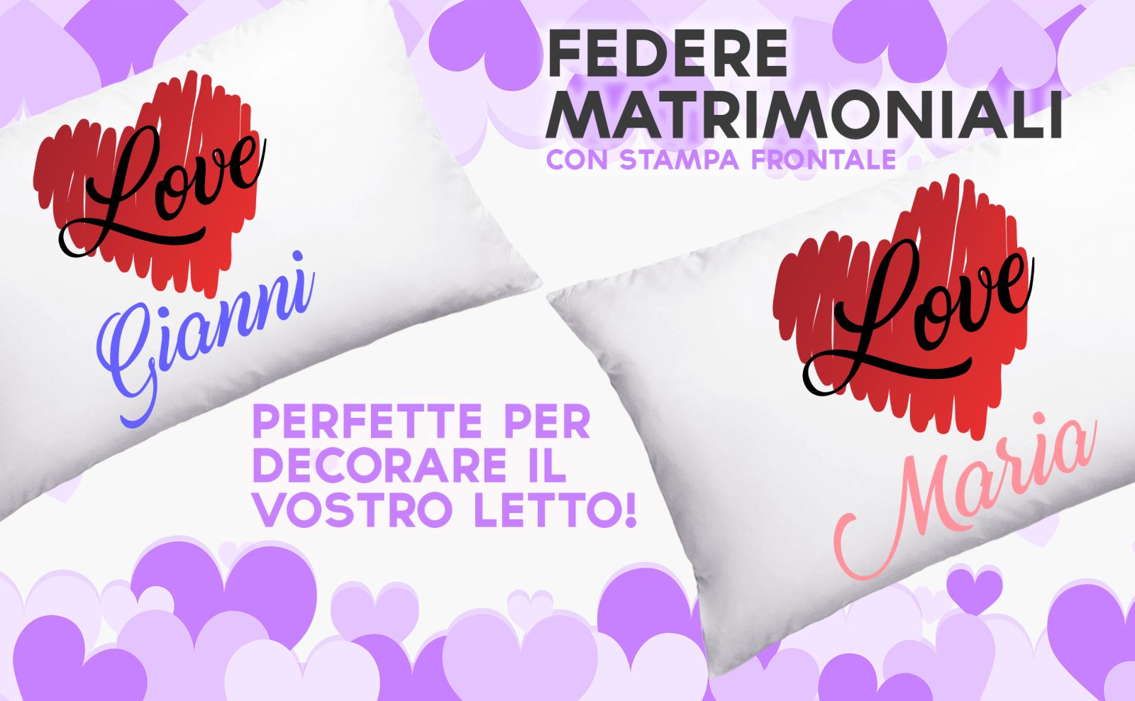 Coppia Federe Personalizzate – Amore – Love – Lui e Lei – [PERSONALIZZA NOMI] – Festa Innamorati – Cuscino San Valentino- Idea Regalo Fidanzata – Regalo per Coppia