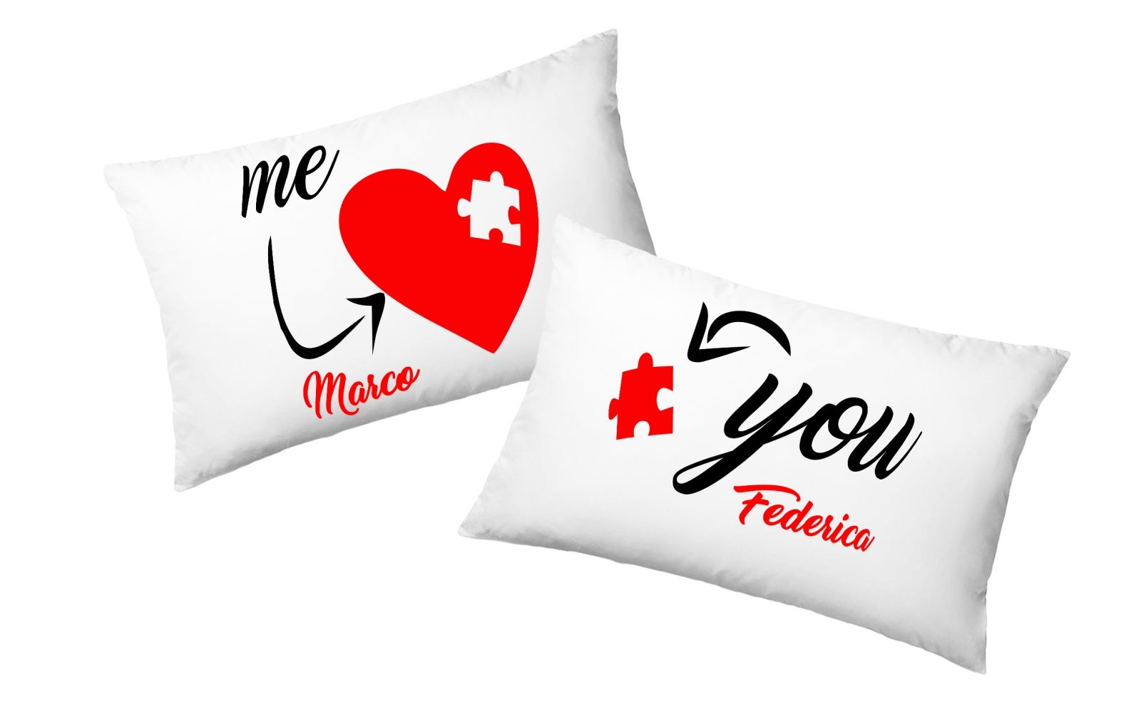 Coppia Federe Personalizzate – Amore – Me and You – Puzzle – Lui e Lei – [PERSONALIZZA NOMI] – Festa Innamorati – Cuscino San Valentino- Idea Regalo Fidanzata – Regalo per Coppia