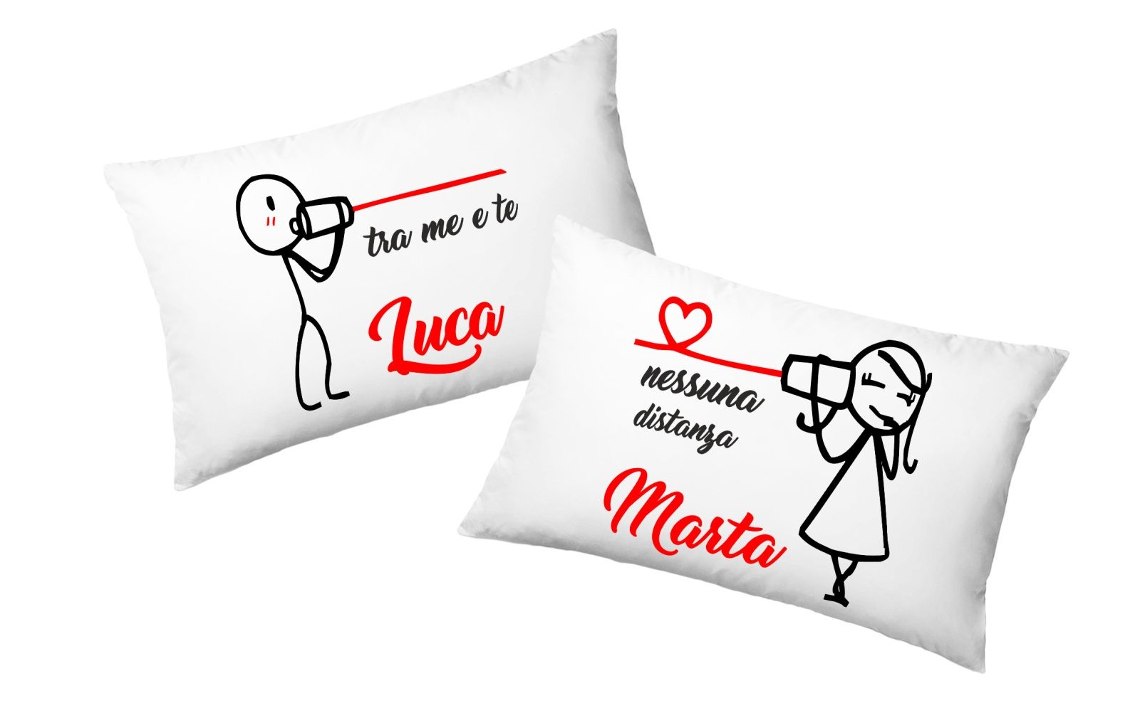 Coppia Federe Personalizzate – Amore – Nessuna distanza tra me e te- Lui e Lei- [PERSONALIZZA NOMI] – Festa Innamorati – Cuscino San Valentino- Idea Regalo Fidanzata – Regalo per Coppia