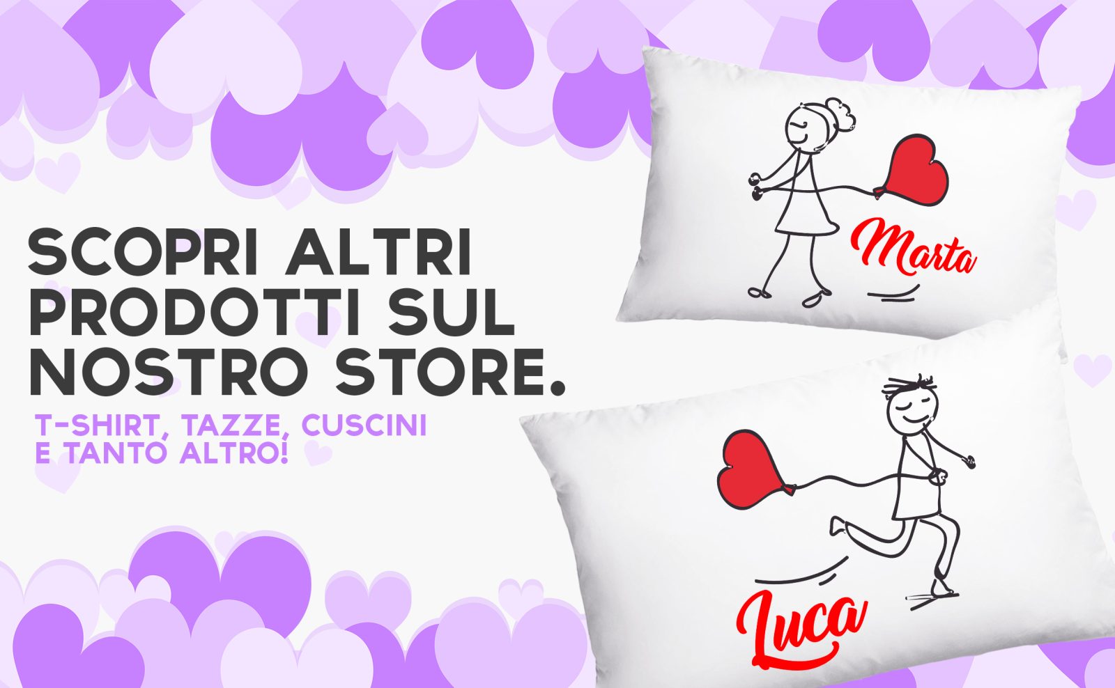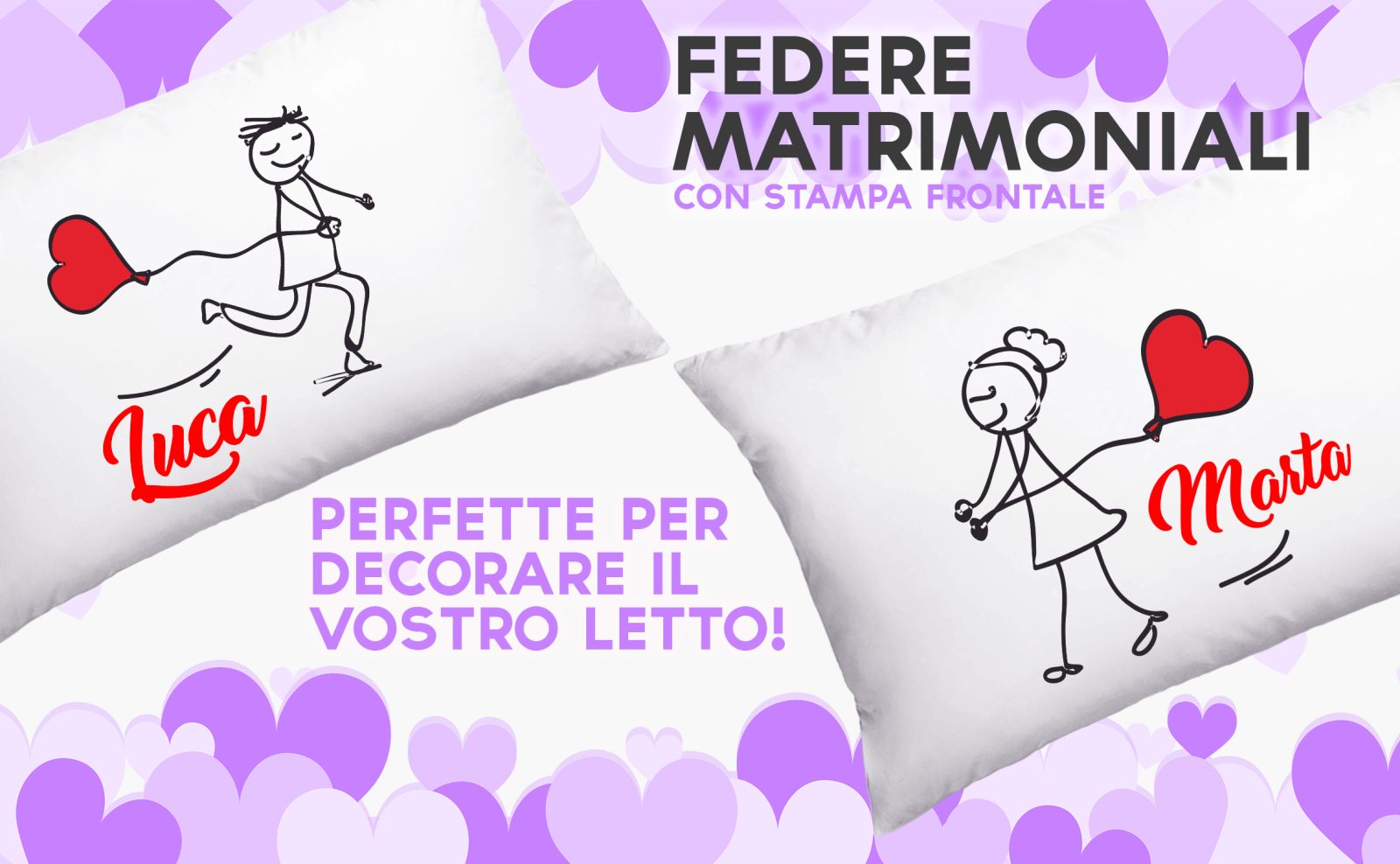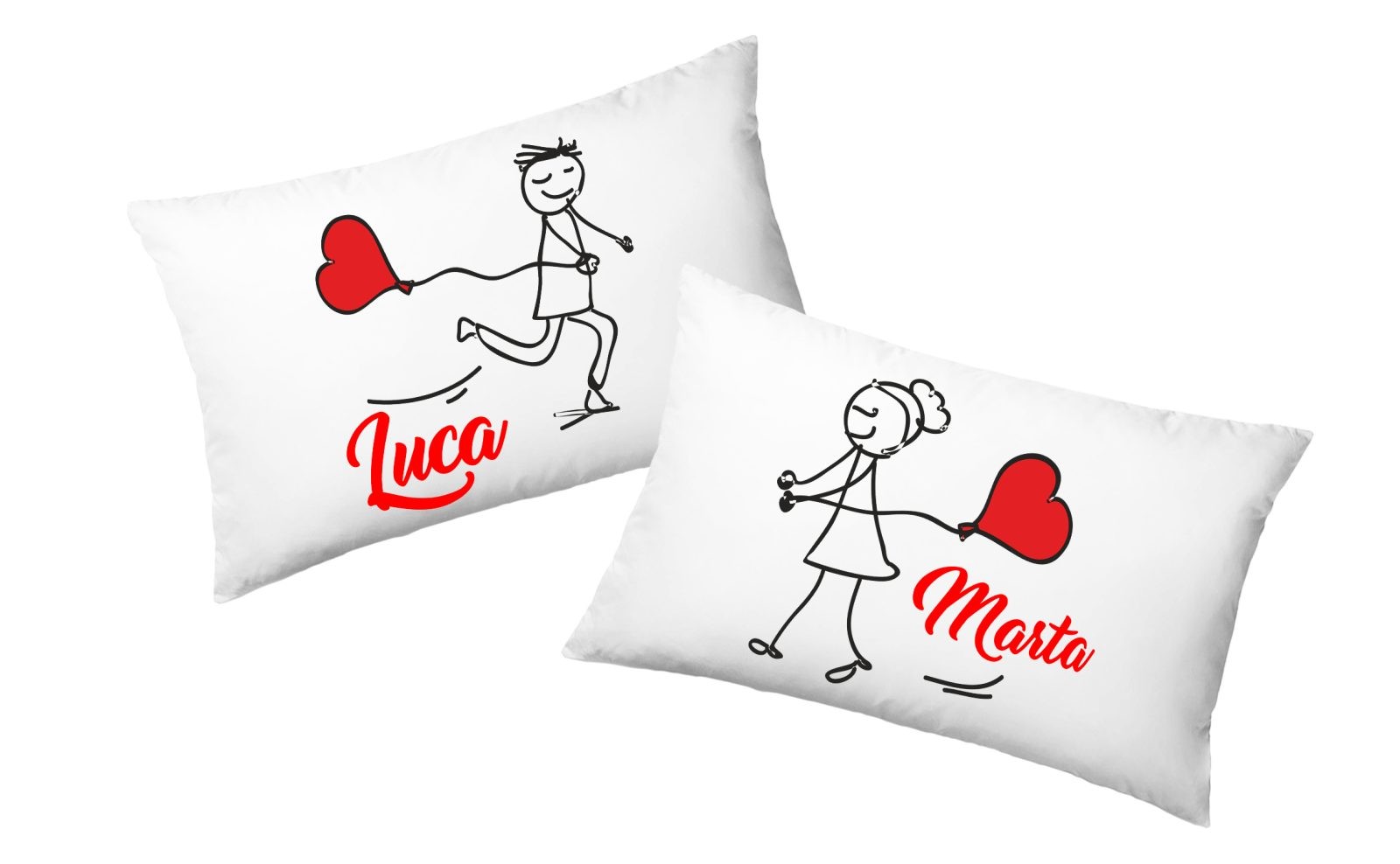 Coppia Federe Personalizzate – Amore – Palloncino – Cuore- Lui e Lei- [PERSONALIZZA NOMI] – Festa Innamorati – Cuscino San Valentino- Idea Regalo Fidanzata – Regalo per Coppia