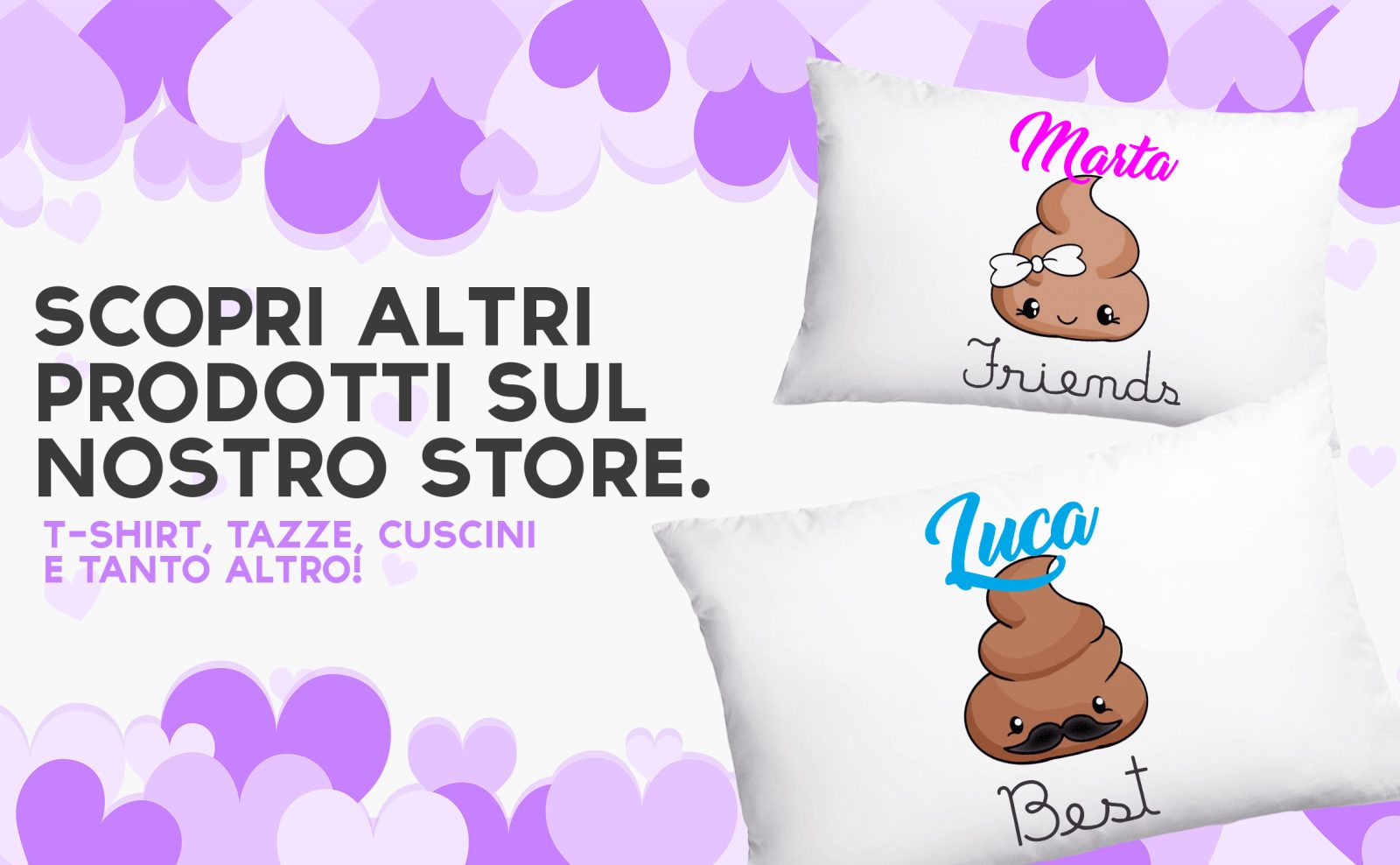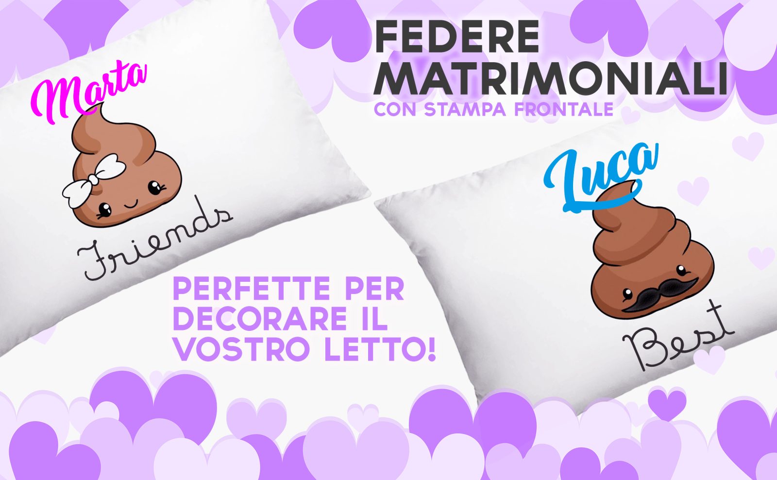 Coppia Federe Personalizzate – Amore – Popò simpatica- Best Friends- [PERSONALIZZA NOMI] – Festa Innamorati – Cuscino San Valentino- Idea Regalo Fidanzata – Regalo per Coppia