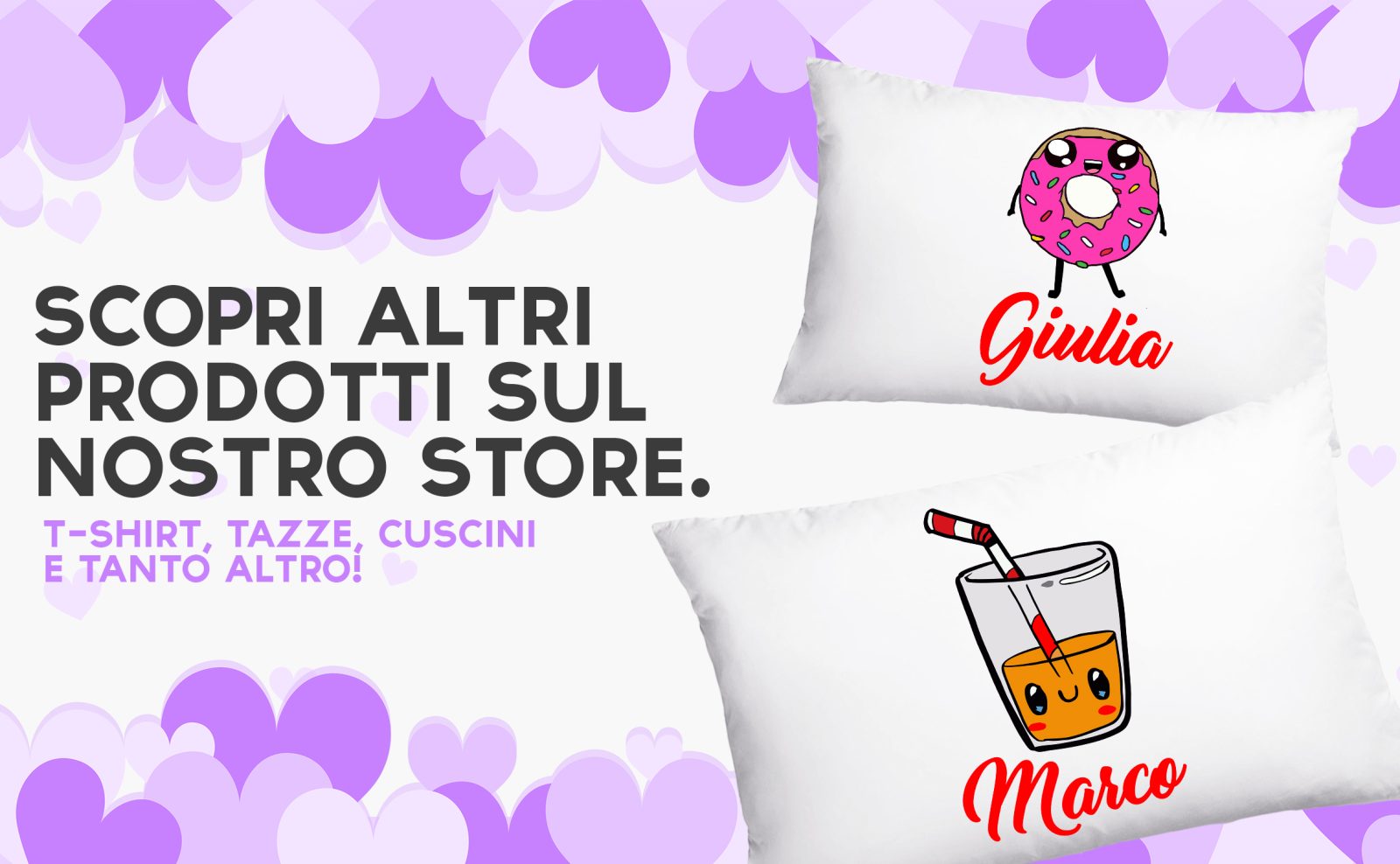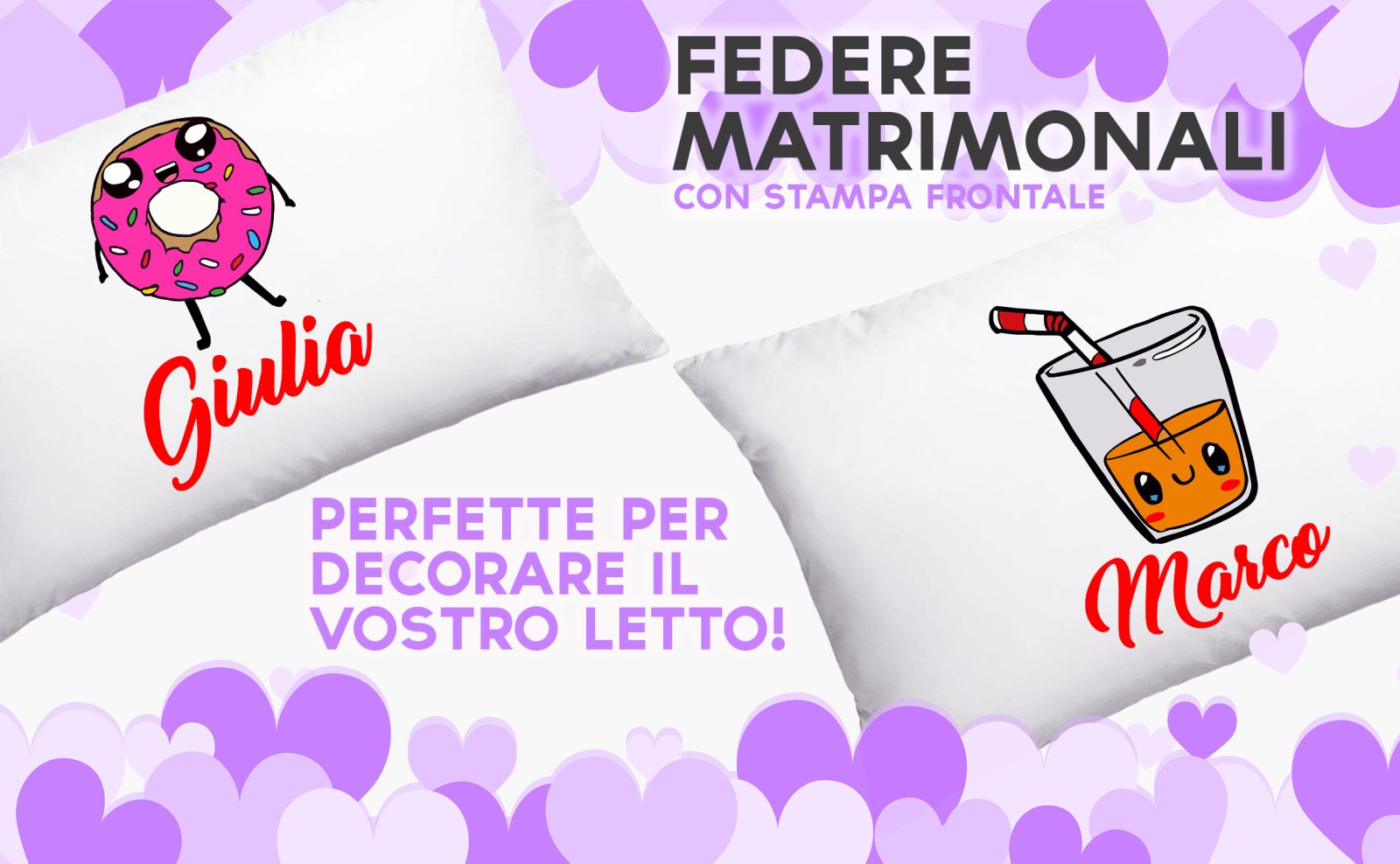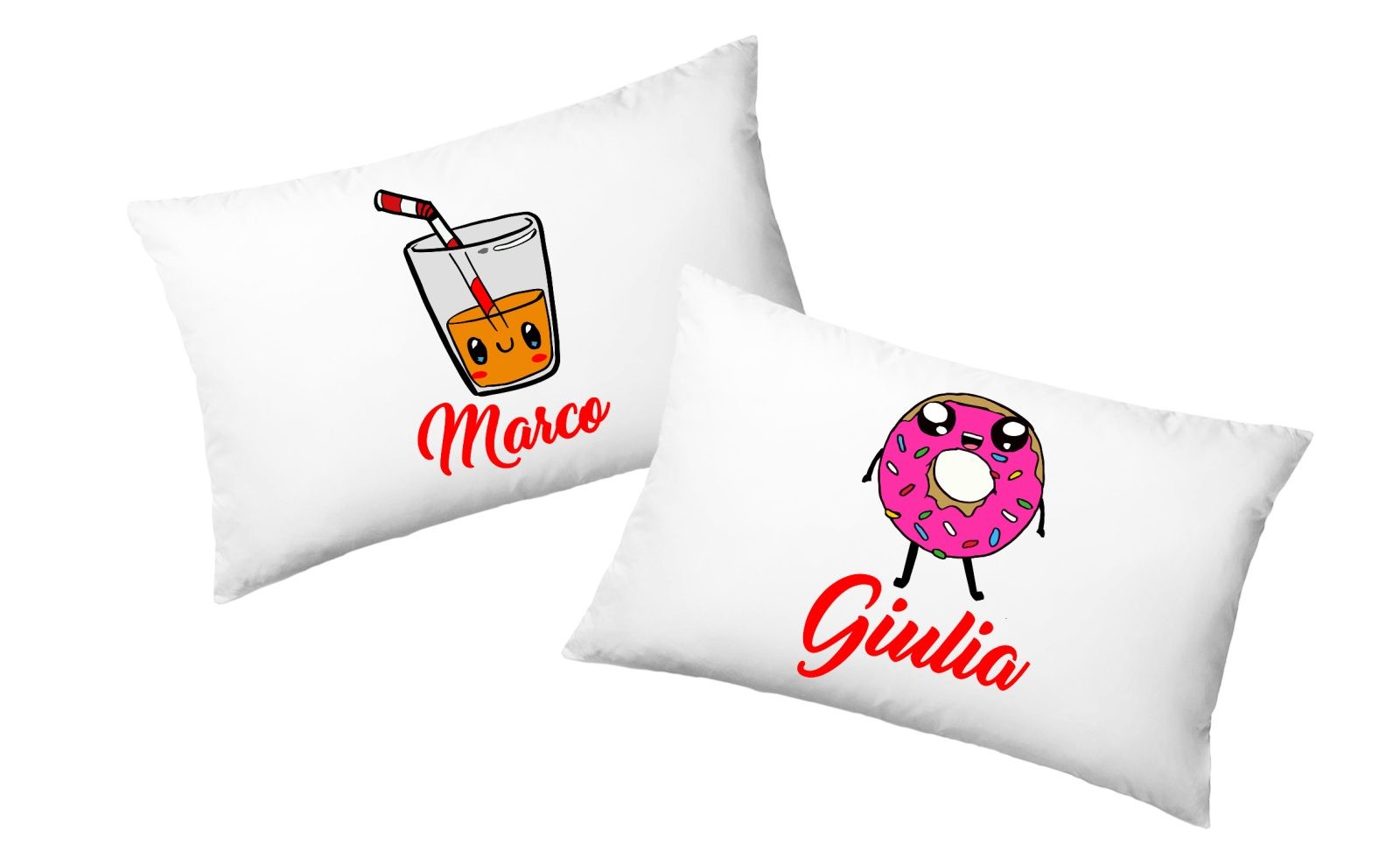 Coppia Federe Personalizzate – Amore – the e Ciambella – [PERSONALIZZA NOMI] – Festa Innamorati – Cuscino San Valentino- Idea Regalo Fidanzata – Regalo per Coppia