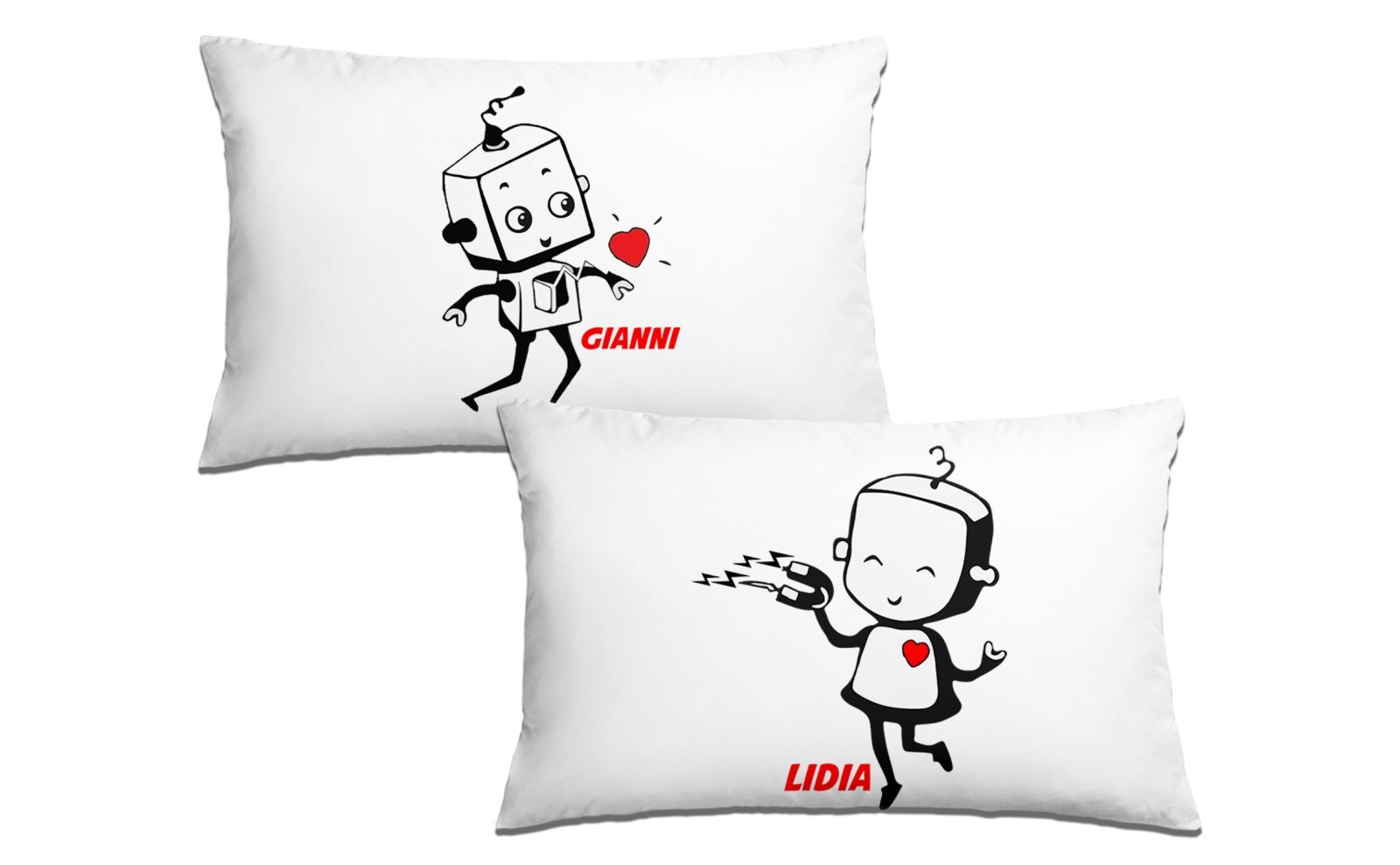 Coppia Federe San Valentino Personalizzabili – Robottini Innamorati [ PERSONALIZZA NOMI] – Federe Cuscino Letto Matrimoniale – Amore – Lui Lei – Innamorati – Idee Regalo Casa