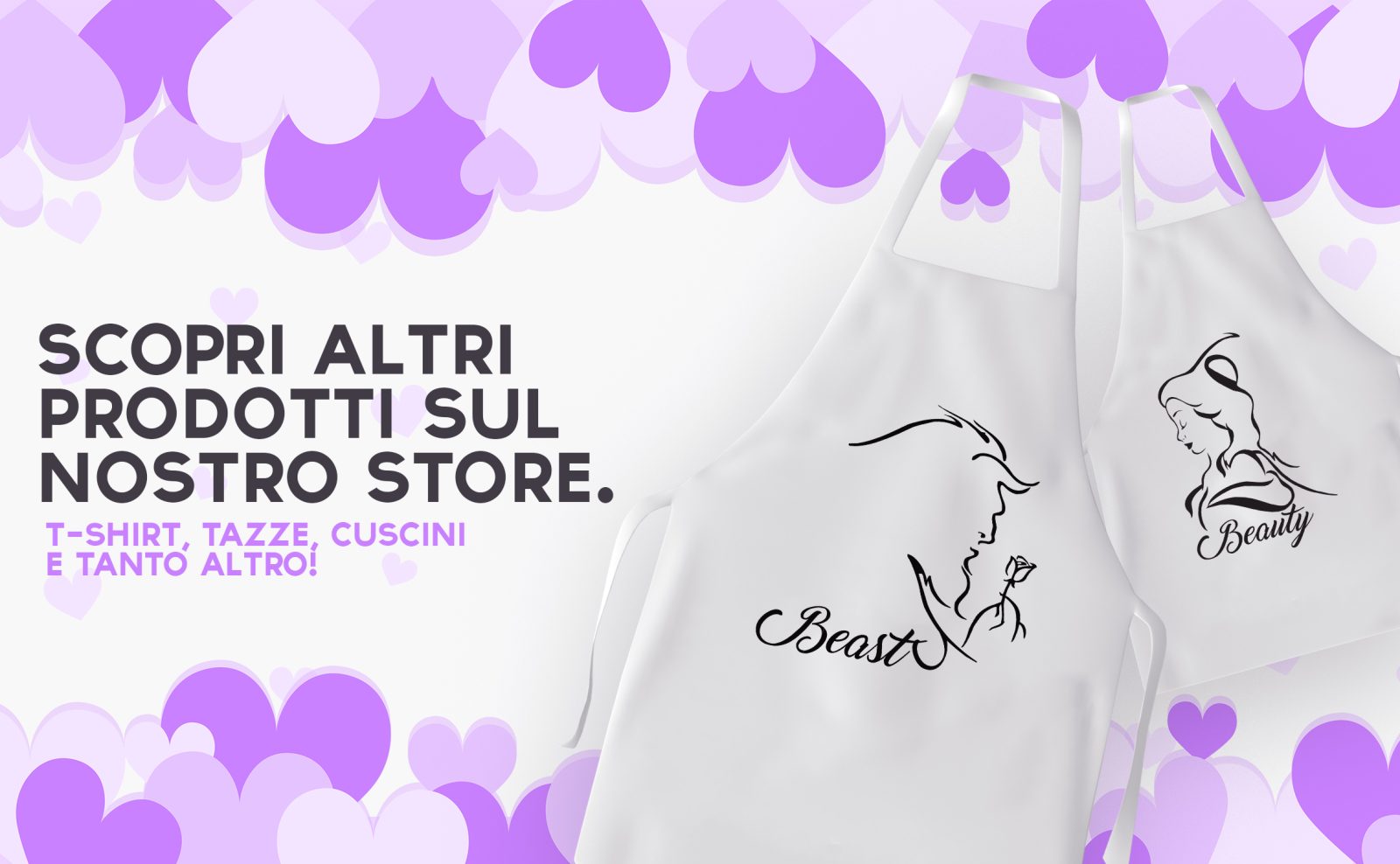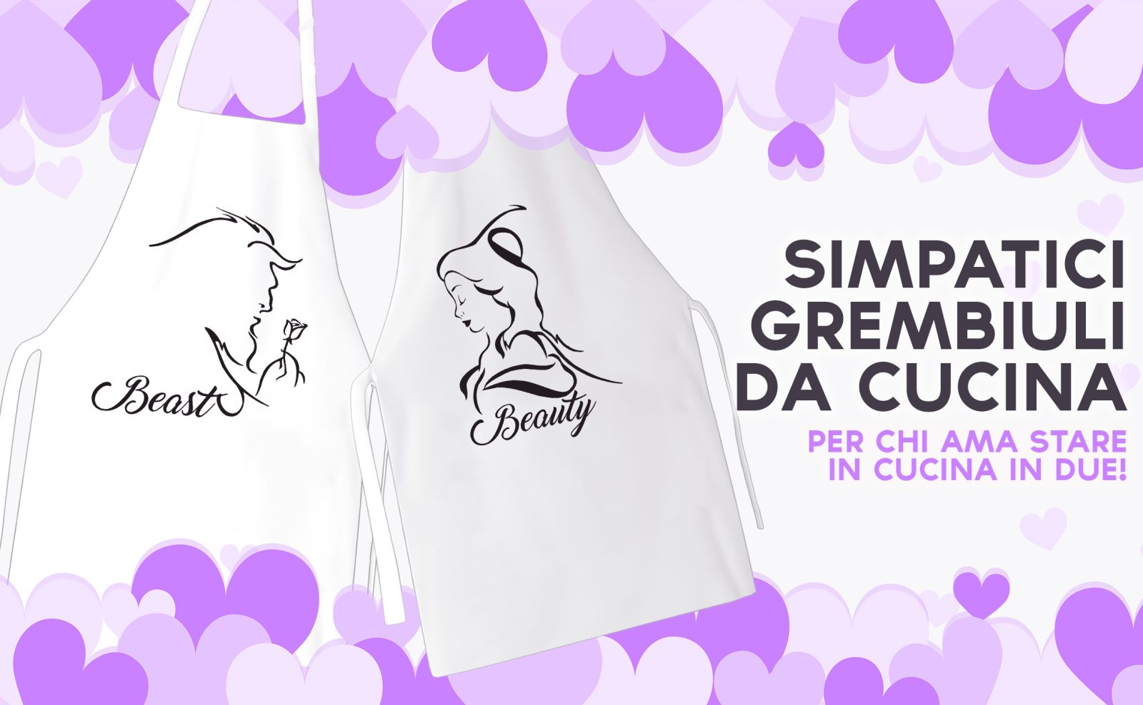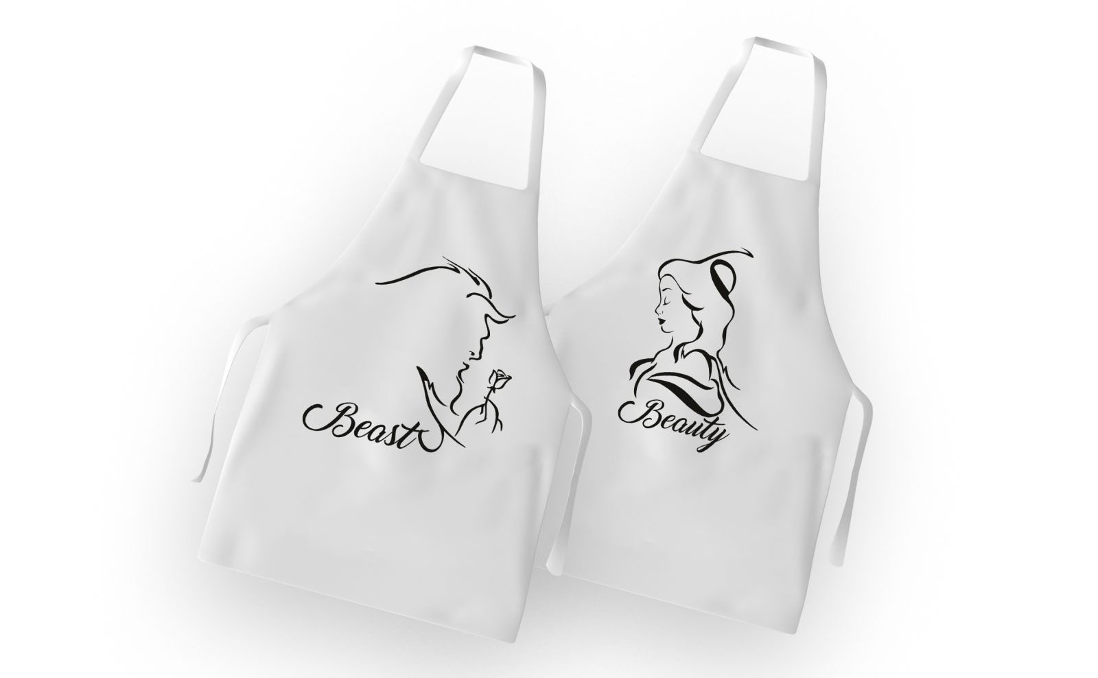 Coppia Grembiuli Amore – Beauty – Beast – Favola Amore – Festa Innamorati – SanValentino – Idea Regalo – Regalo per Coppia