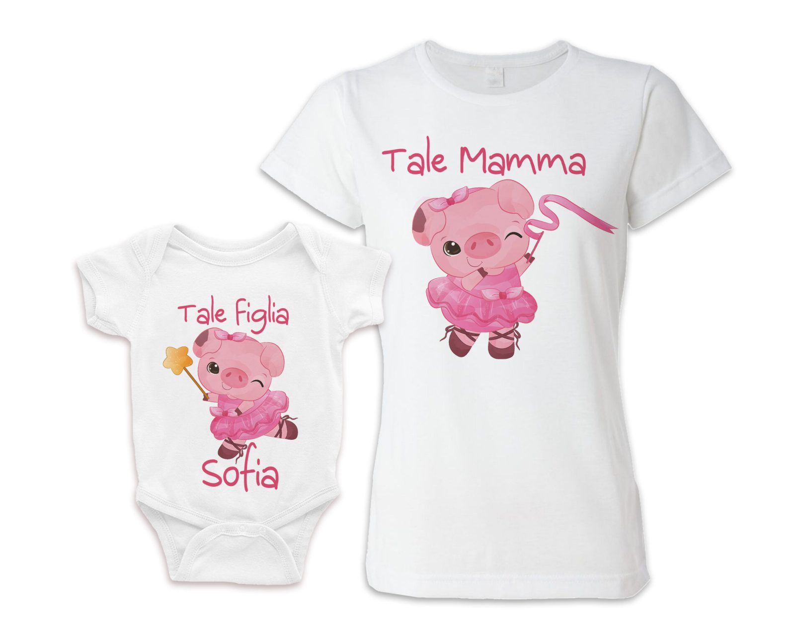 Coppia Maglietta Body Neonata [ NOME PERSONALIZZATO ] – Tale Mamma – Tale Figlia – Maialini – Rosa – Pig – Porcellini – Disegni Simpatici – Coordinate – Cartoon – Bimba Femminuccia – Idea Regalo