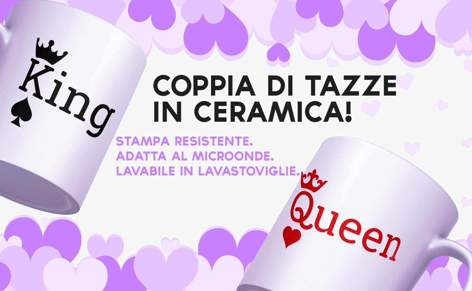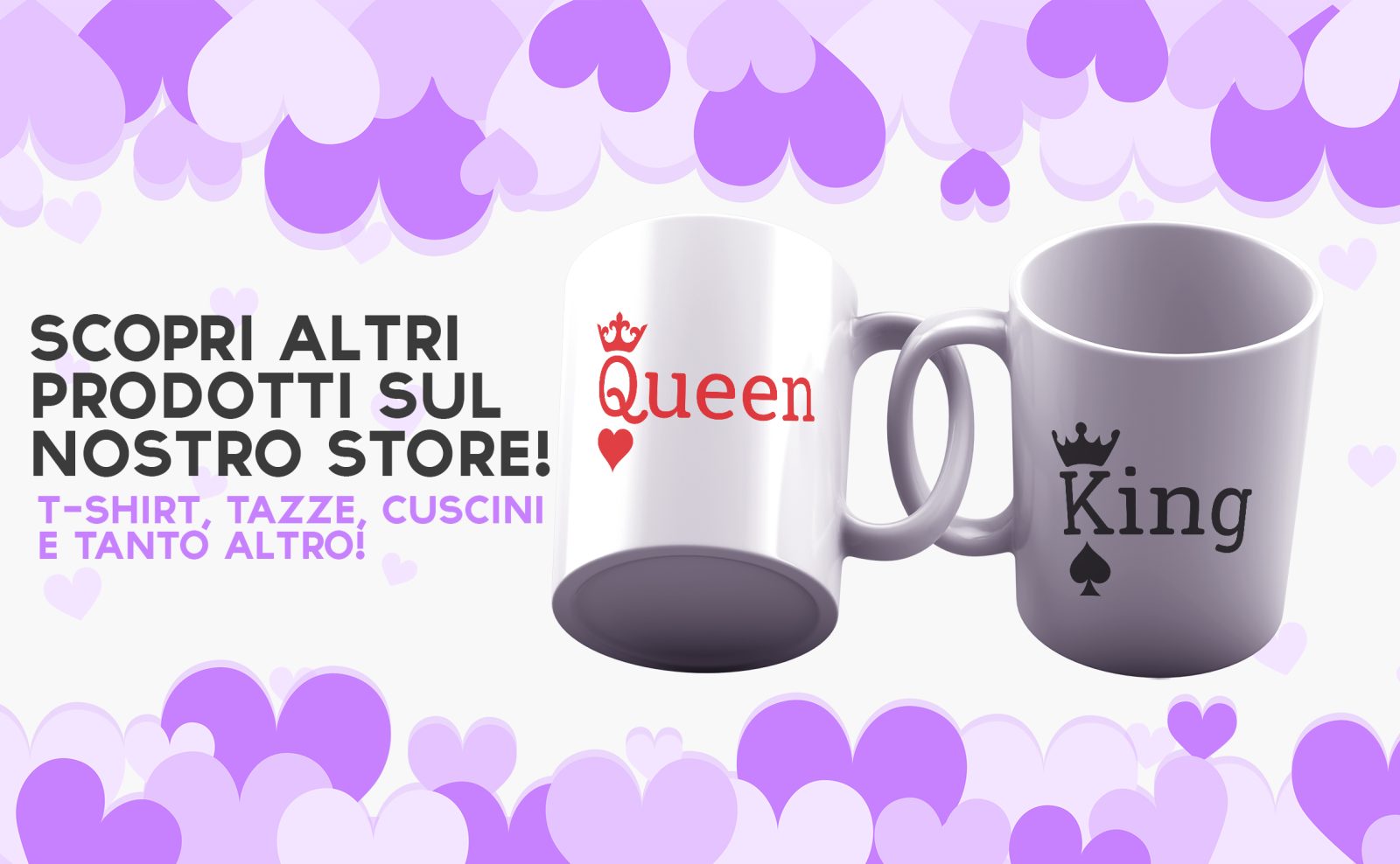 Coppia Tazze Amore – King e Quenn- Re e Regina – Festa Innamorati – Maglietta – SanValentino – Idea Regalo Fidanzata – Regalo per Coppia