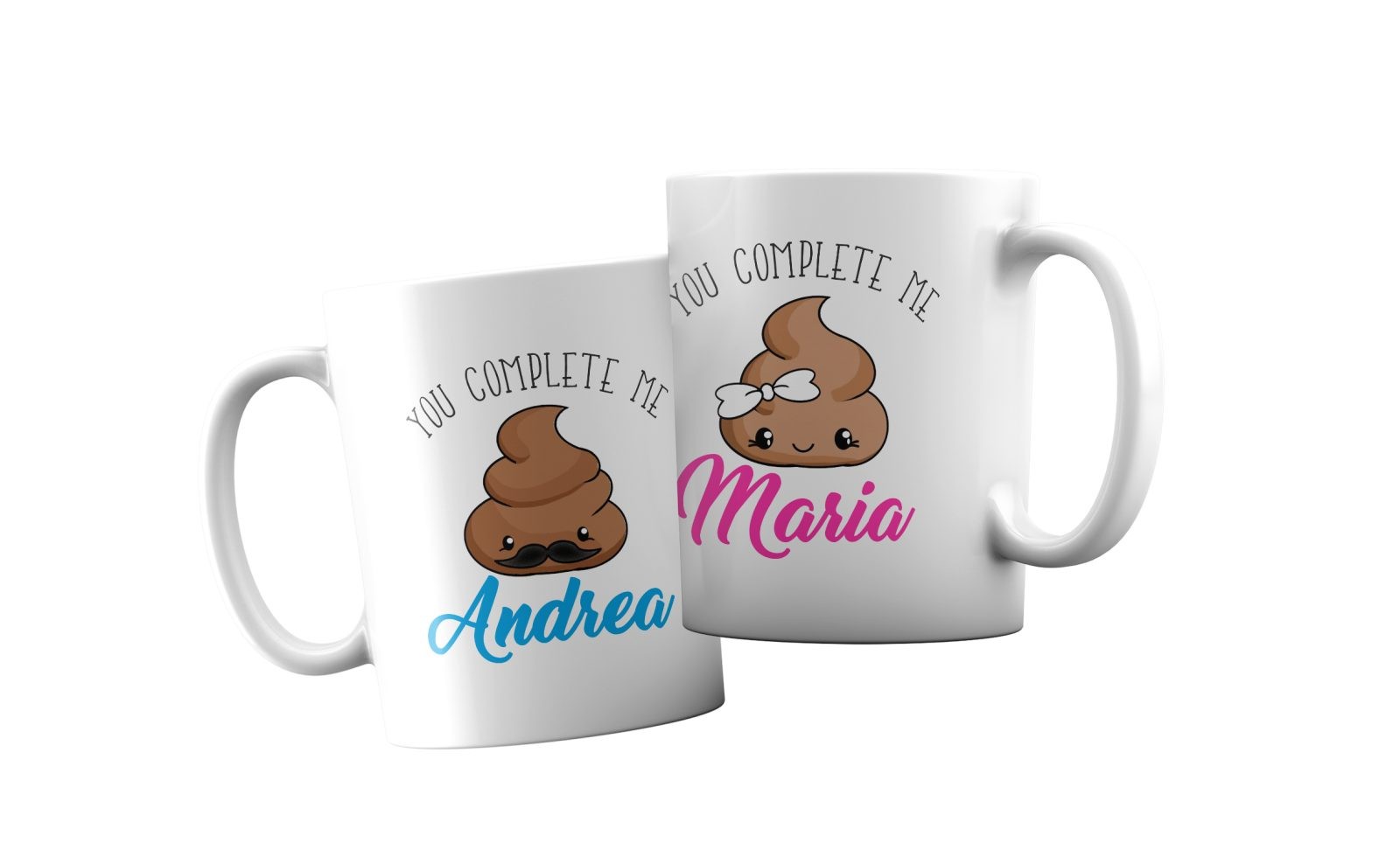 Coppia Tazze Personalizzate – Amore – Popò simpatica- Tu mi completi – [PERSONALIZZA NOMI] – Festa Innamorati – Maglietta – SanValentino – Idea Regalo Fidanzata – Regalo per Coppia