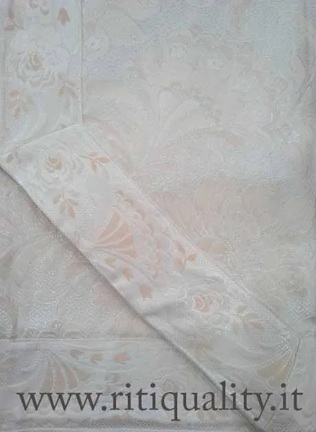 Copriletto singolo rosa salmone art. 1625 Annette. Elegante e raffinato copriletto estivo in cotone damascato con tessuto lavorato in tema floreale. Colore rosa salmone. Prodotto italiano. Marca Annette. Tessuto cotone lucido damascato. Composizione 29% cotone, 51% poliestere, 20% propilene.