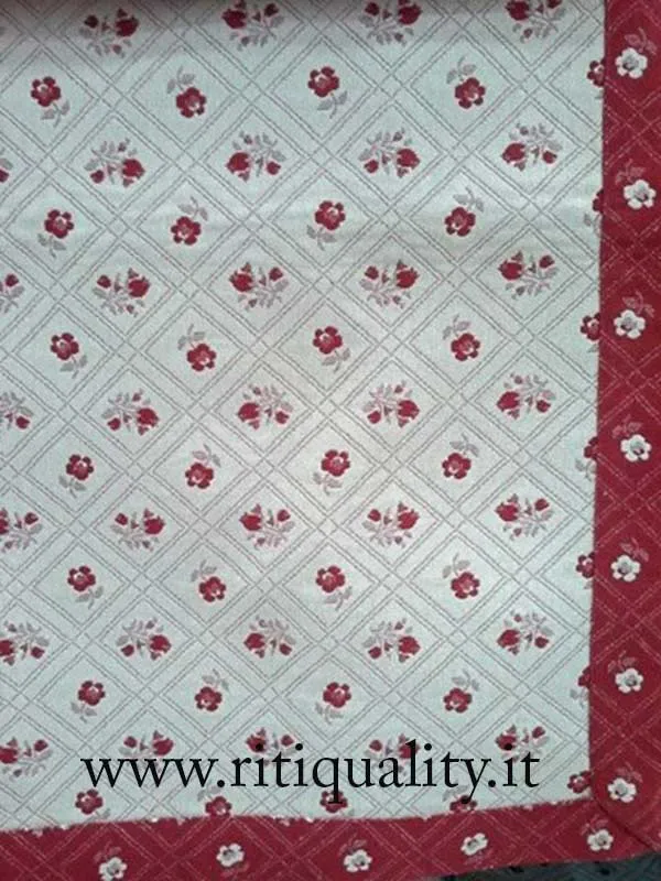 Bellissimo copritavoloย con fantasiaย roselline X8 posti in gobelin varianteย avorio con fantasia roselline rosse e bordura in contrasto rosso con roselline avorio.ย Rendi il tuo tavolo elegante e sofisticato con questo tappeto tavola. Misure: 140 cm x 220 cm. In raffinato tessuto gobelin. Composizione: 100% cotone.