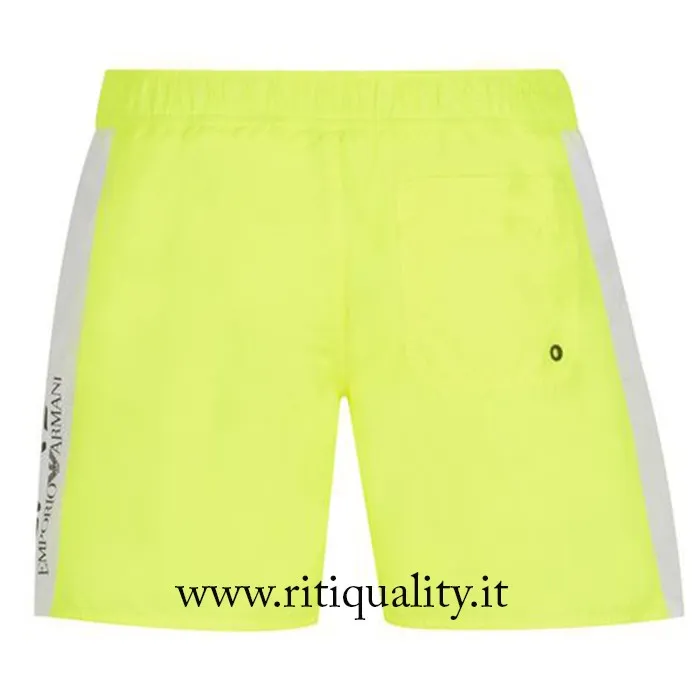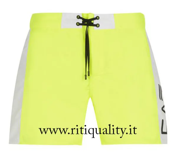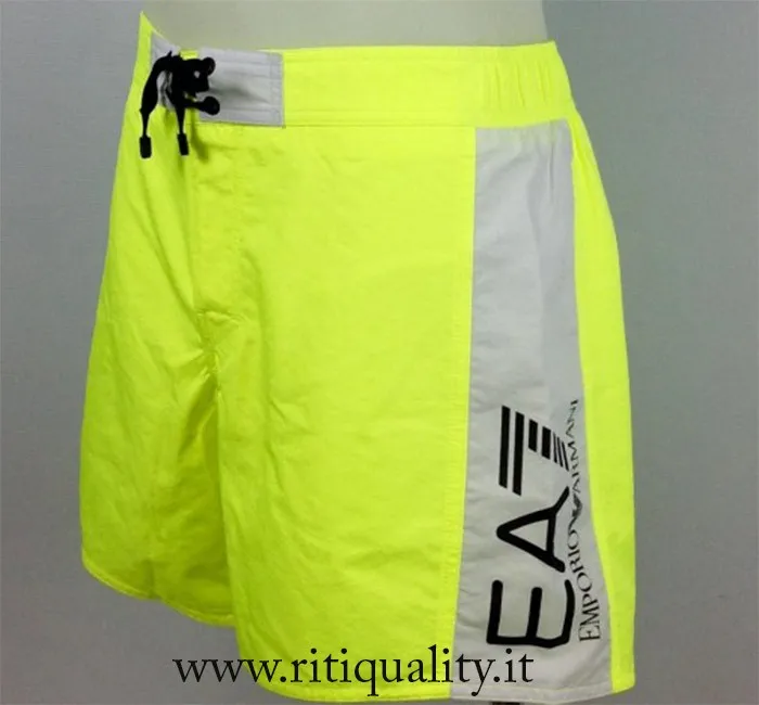 Costume boxer uomo EA7 Empori Armani art. 902001 7P728 disponibile nella variante giallo fluo. Il boxer presenta davanti chiusura fissa con lacci esterni e 4 occhielli e sul retro fascia elastica, taschino aperto sul retro. Particolarità del costume sono le bande laterali bianche in contrasto con logo EA7 Emporio Armani.