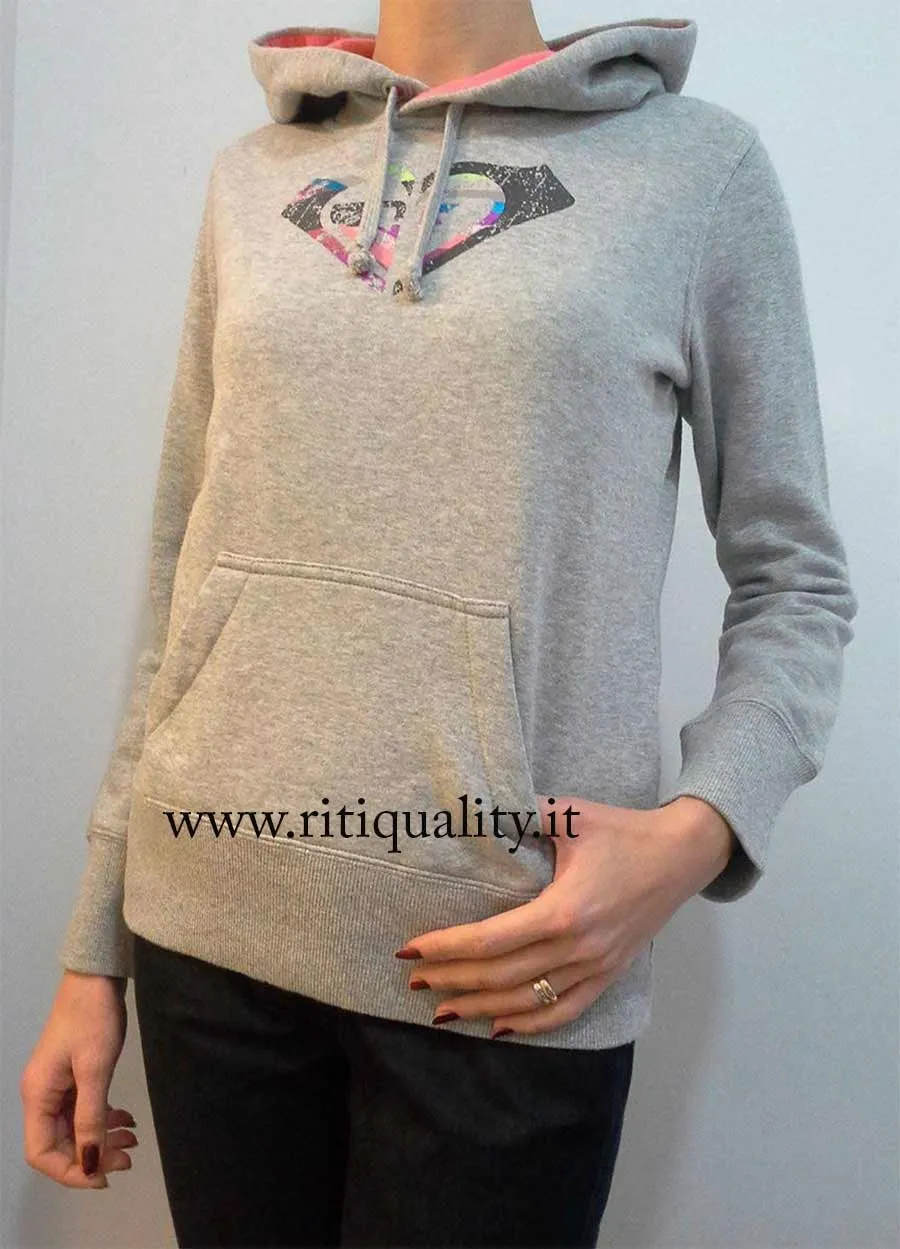 Felpa donna Roxy art. XGWSW992ย variante grigio. Felpa girocollo, tasca a marsupio e cappuccio con interno in contrasto di colore rosa. Fascia in maglia in vita e polsini. Morbido pile all’interno con elevato potere termico. Logo Roxy. Vestibilitร regolare. Composizione: 80% cotone, 20% poliestere. Marca: Roxy.