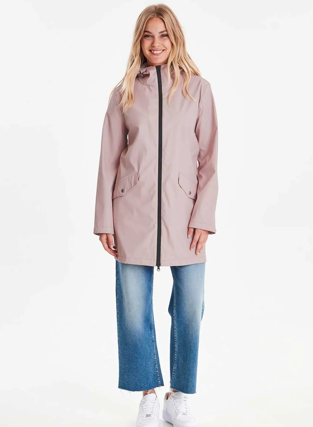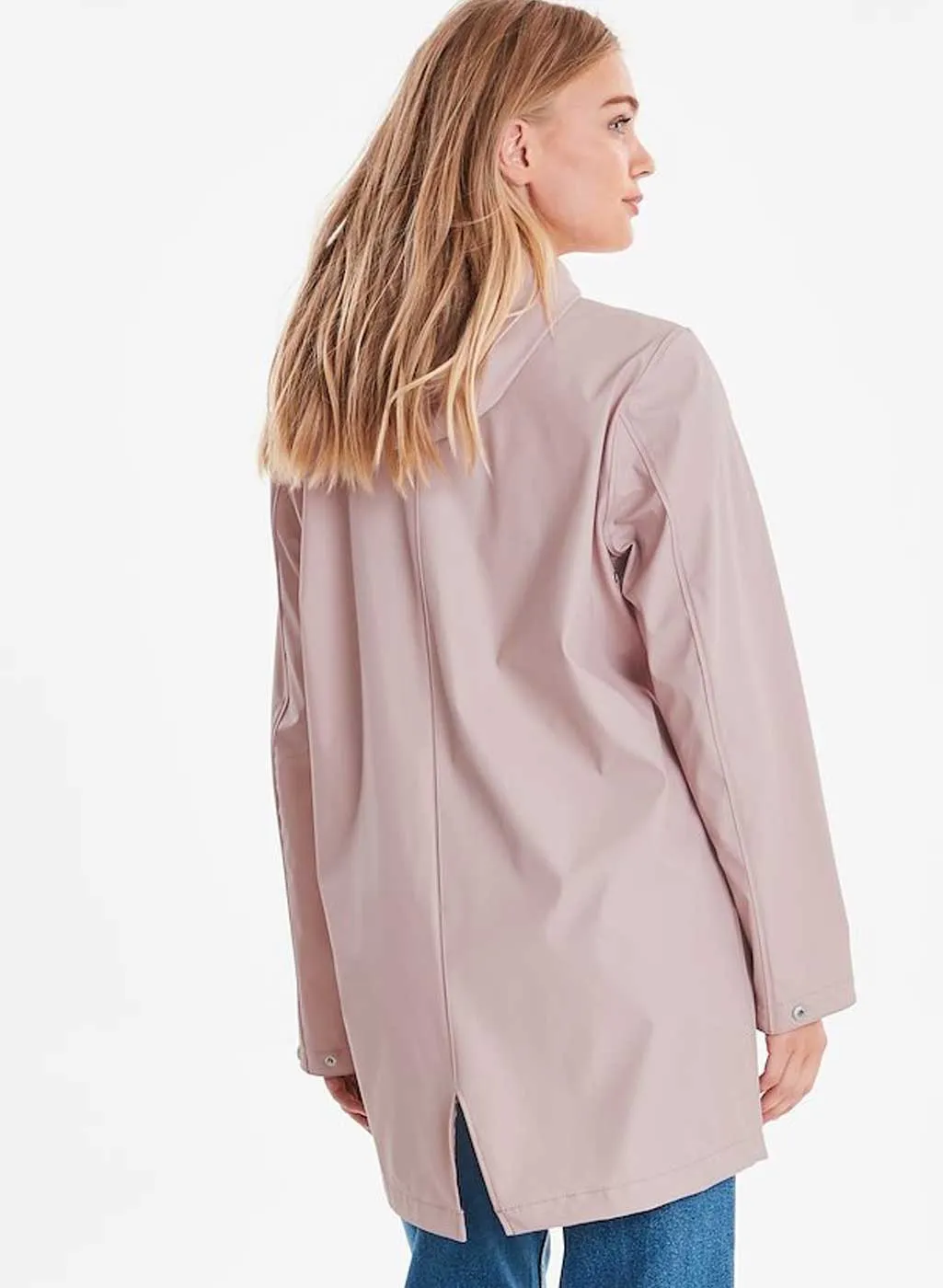 Giubbotto Donna B.Young art.20807376. Giubbotto da pioggia in finta pelle con cappuccio dotato di due tasche con patta. E’ disponibile in rosa e ha un cappuccio con coulisse. Questo giubbotto è ideale per chi va in scooter in quanto è resistente all’acqua. Materiale: Finta pelle, 100% Poliestere. Marca: B.Young