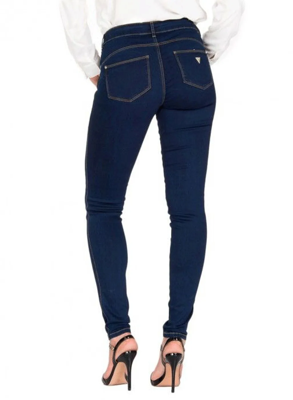 Guess Jeans Donna art. W93A37D3OO0 modello Skinny Mid vita alta elasticizzato con fondo stretto. Particolare colore blu denim senza sfumature con cuciture beige a contrasto di colore con cinque tasche e logo in metallo dorato sulla parte laterale. Particolare vestibilità Ultra Curve che modella la figura valorizzandola in tutte le sue forme. Composizione: 65% Cotone, 17% Modal, 16% Poliestere 2% Elastane. Marca: Guess.