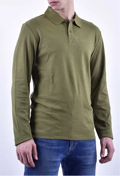 Polo verde in Jersey manica lunga logo scritta ricamata su petto